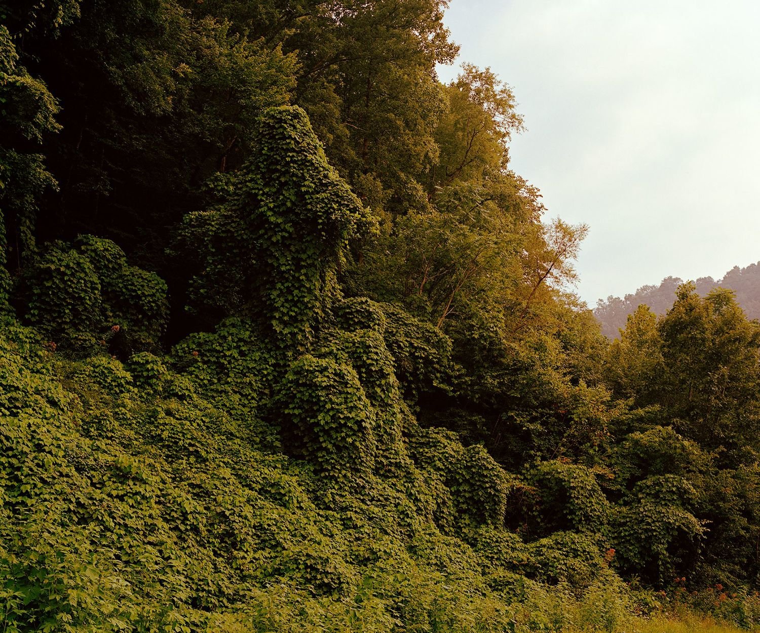 Storytelling in Appalachia has a long-standing tradition, and it infuses the region with mystery. Using lore, pseudo-scientific study, and personal experiences as a compass, I see this place through idealized eyes of wonder, and these images become my personal folklore. They bring to life the fantasies and memories I carry with me. This is a place where you can wash away sin in cool stream waters, where corpse birds come to ferry away souls to the next life, where rocks burn and kudzu conceals. This is the place where the prevailing winds whisper old stories to those who know how to listen.