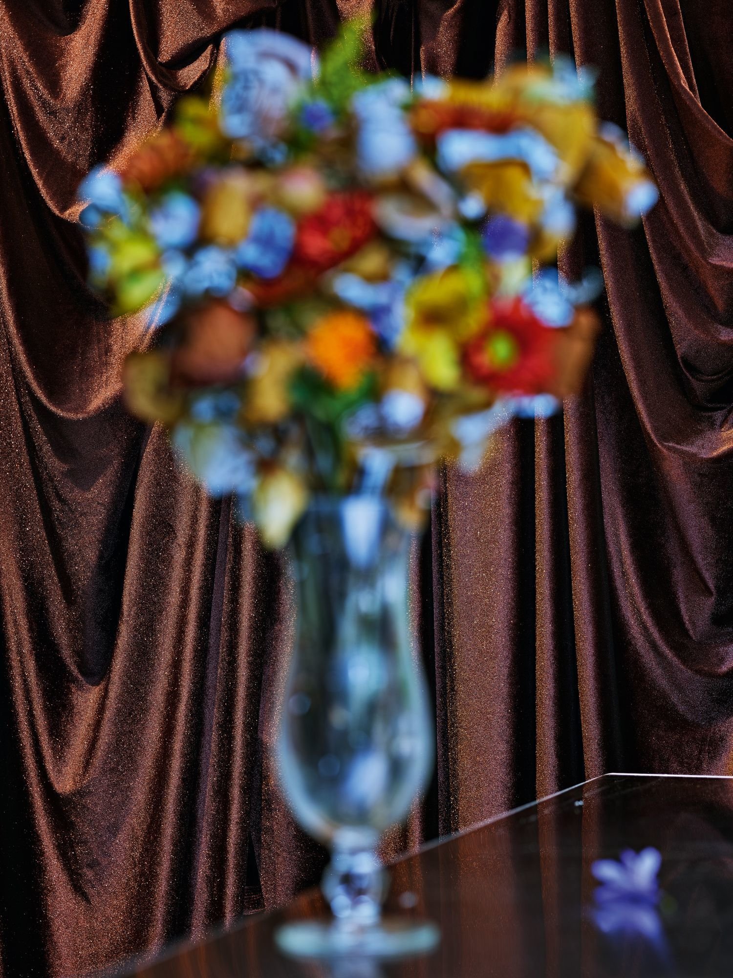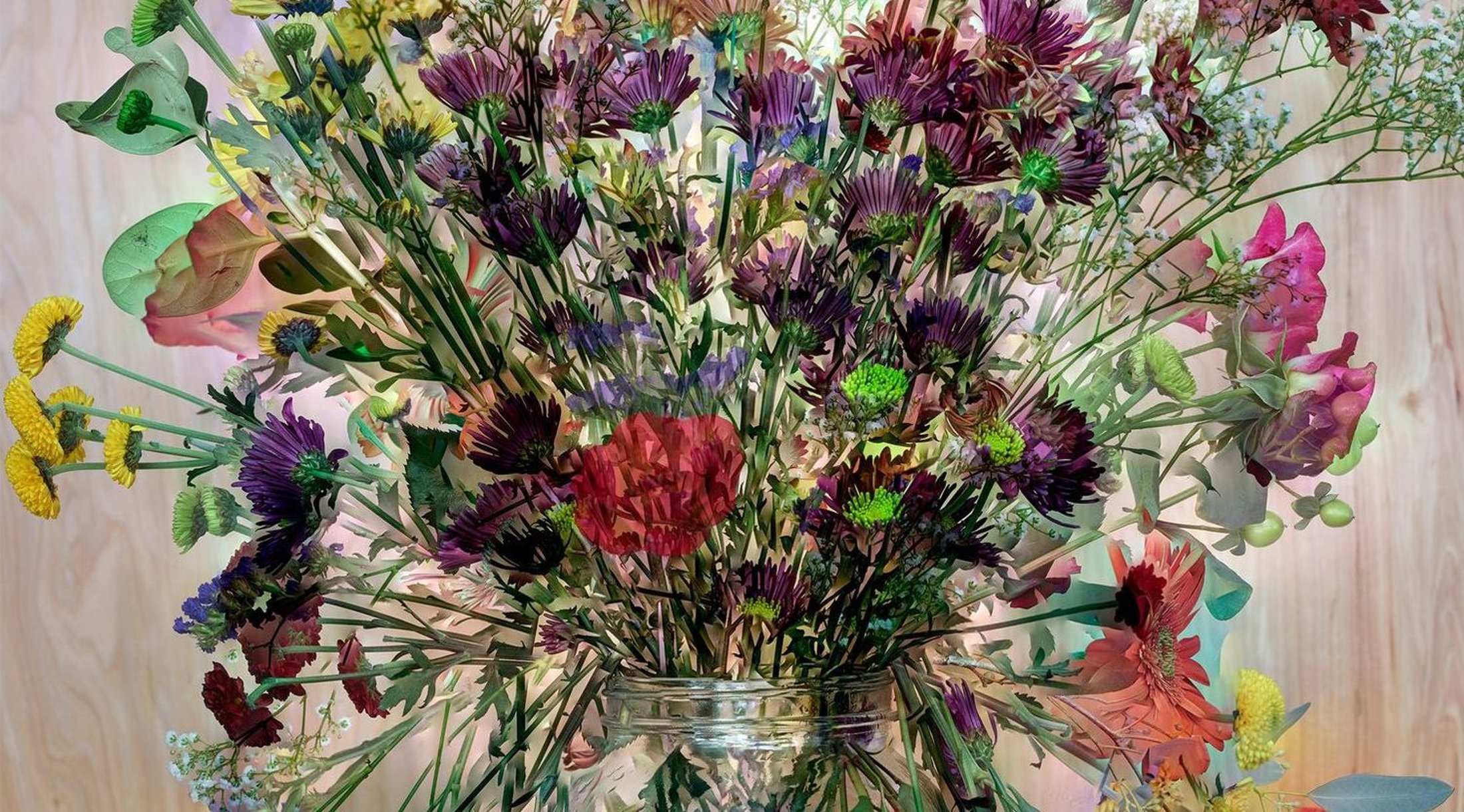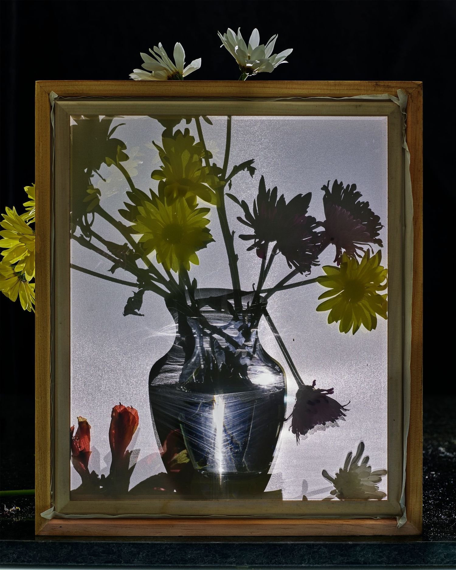 In his latest series, Flowers for Lisa, Morell takes a traditional still life subject — a vase of flowers — and pushes and pulls it well beyond the typical boundaries of that genre. What started with a single, romantic photograph for his wife, Lisa, became a muse-like obsession for him over the course of a few years. The result is a tour de force show of seemingly endless creativity, all while working within a self-imposed set of restrictions.