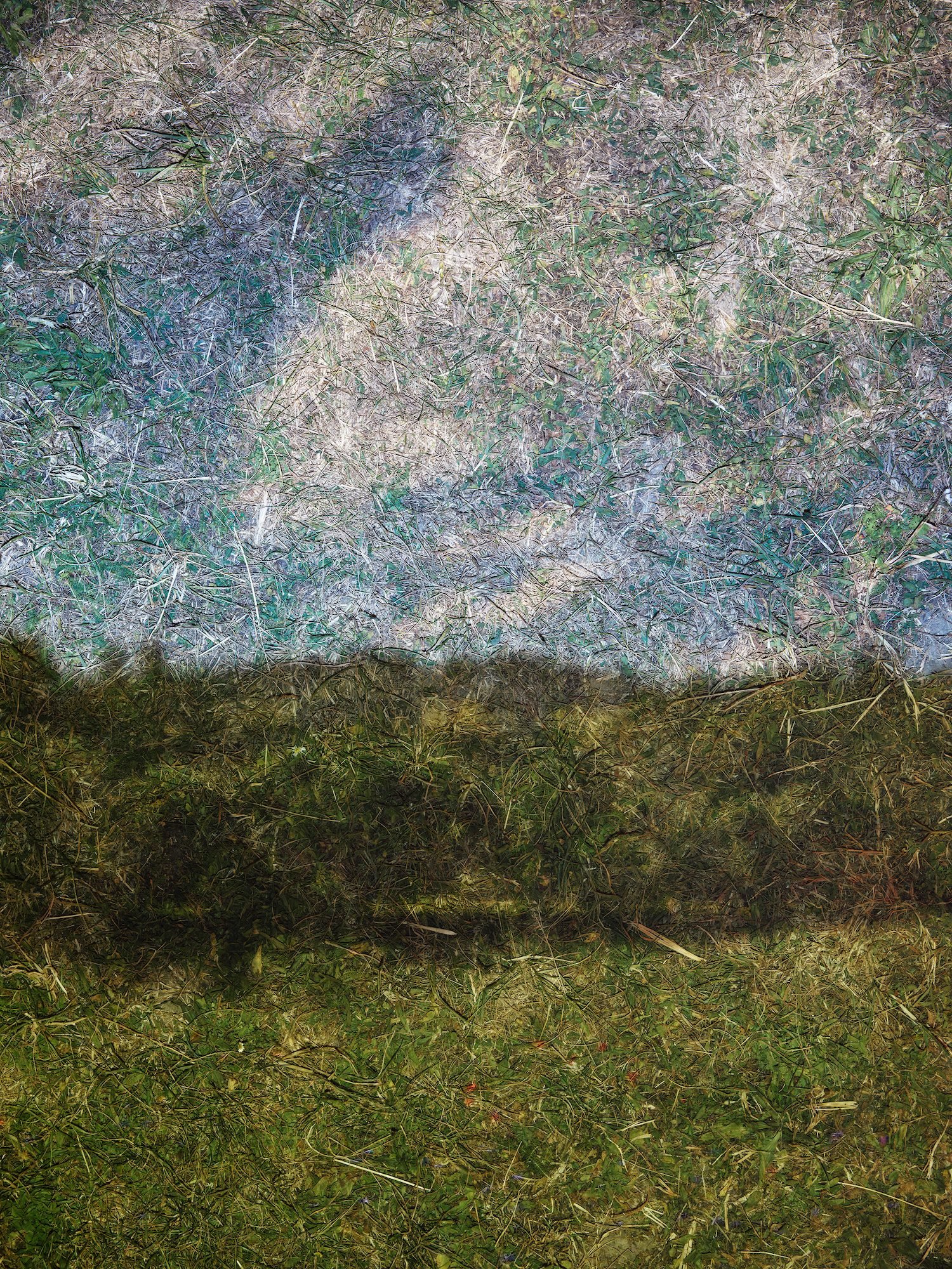 Thanks to a gardener friend at Monet’s garden in Giverny, the photographer was able to get access after the tourists had left at 6pm to take advantage of the most painterly light of the day. In View Of Monet’s Water Garden #1, the stones embedded in the path, polished by the feet of tourists, are in focus, along with the soil. The projection of the water garden is a vapor over the stones, a view you can’t quite grasp, but understand anyway.