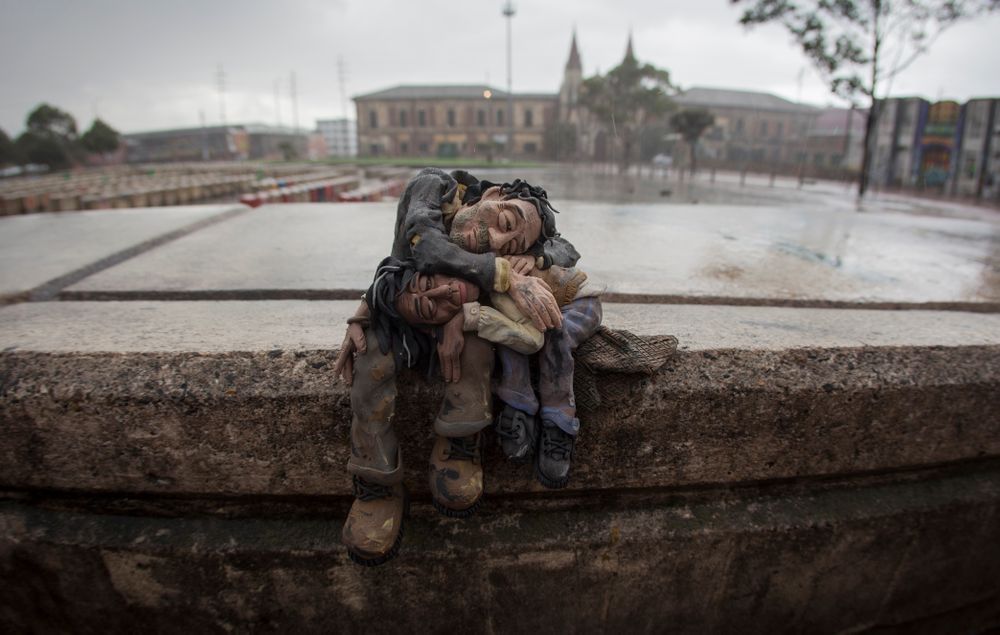 I had a small epiphany in Colombia last year when, at a portfolio review session, I saw the work of the photographer and filmmaker Edgar Álvarez. He had spent several years on the streets of Bogotá and Los Angeles making work about the many homeless people who live openly as urban nomads yet somehow remain invisible to the rest of the population. Although he had made many photographs of the individuals themselves, getting to know them over an extended period of time, his final images were not of them, but of clay figures he had modelled, each depicting a real individual. He then photographed these clay figures in the same streets frequented by their real-life counterparts. I found the images remarkably affecting. In many ways, they were more emotionally powerful than the photographs of actual people. The clay puppets became emblematic. They avoided the process of individualising (and perhaps judging) that can become a kind of unconscious defense against engaging with the wider social responsibilities such images might (indeed, should) evoke. Edgar called the series “The Invisibles” because this was how these homeless people felt themselves to be. What was so powerful about his lateral approach was that the puppets made the plight of the homeless emotionally “available” in a way that a straight photograph may not.