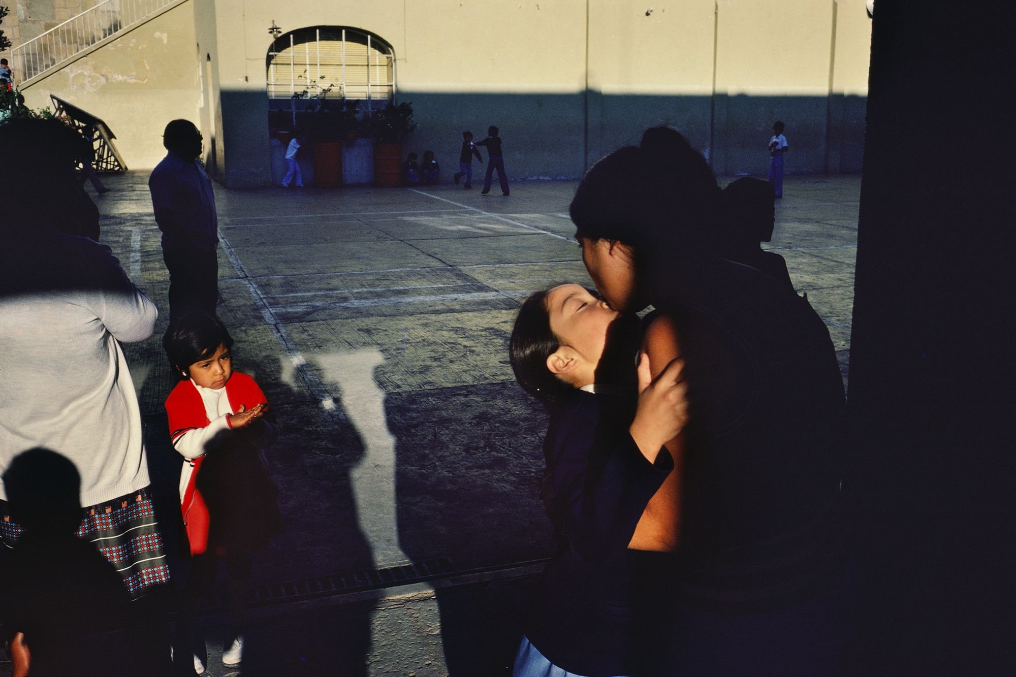 Not long after, Webb’s turn to color seemed like a natural progression for a photographer immersing himself in the unmissable hues of sun-drenched Mexico. Writing in La Calle, Webb associates the move away from black-and-white with his first experience of the city of Oaxaca: “I began to get a sense of what Octavio Paz has called ‘Mexicanism’—delight in decorations, carelessness and pomp, negligence, passion and reserve.’” Fortunately, the danger of slipping from observant “Mexicanism” towards visual clichés of a tequila-soaked land of lazy ease and melancholic indifference is not something to which Webb succumbs. Instead, he captures Mexico’s street (“la calle”) life with finesse and respect: children play, dogs sit, lovers embrace, people stand and wait, life unfolds before his lens and our eyes.