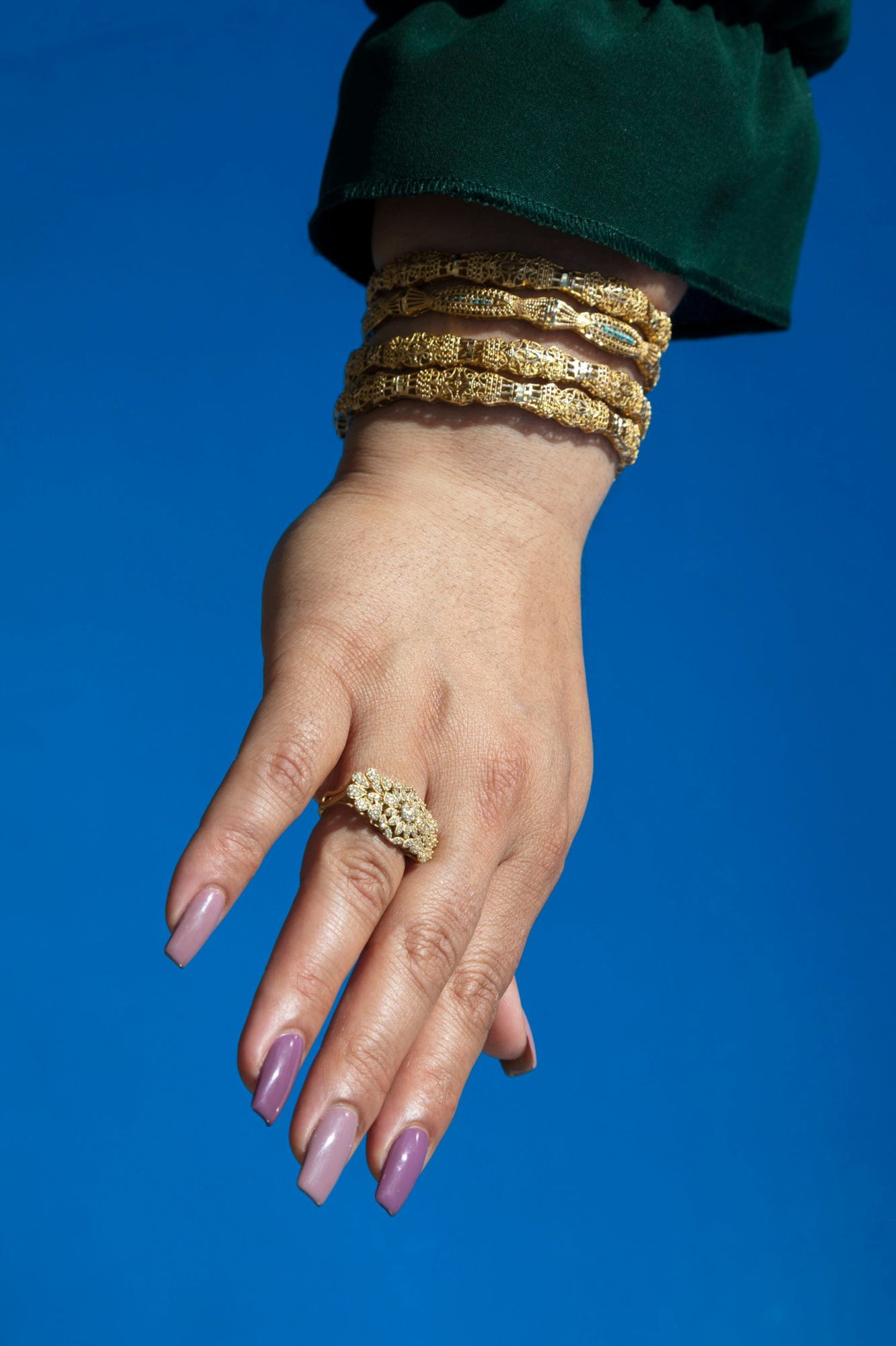 Growing up as a minority in a central Asian multi-ethnic city, I’m driven to loud, bright colors and rich textures. I like to break with the classical idea of aesthetic categories and highlight the mixture of everything that‘s not fitting in with Western society’s beauty standards.