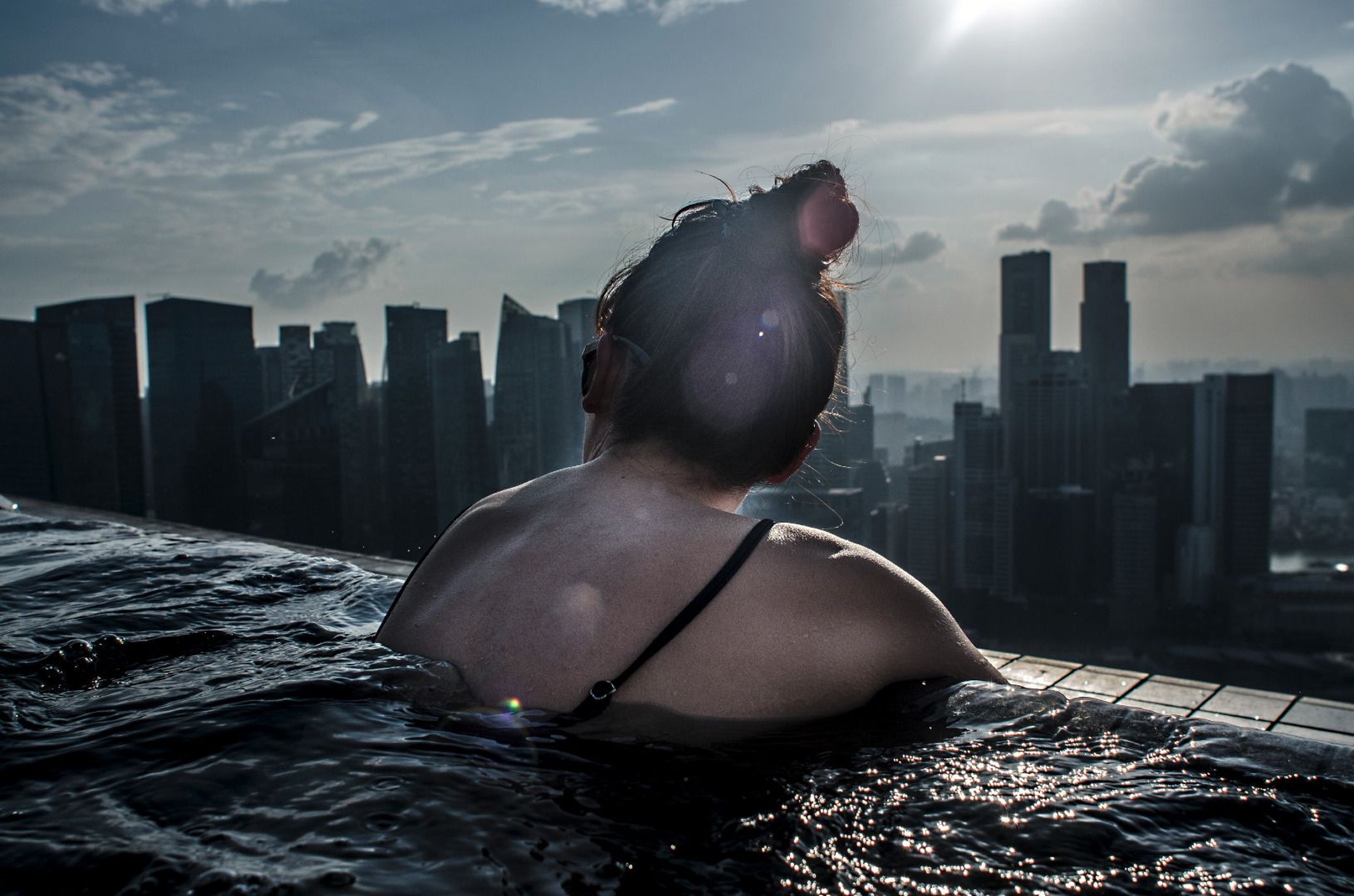 Wading chest deep in the highest swimming pool in the world, I can study the intense changes made to the landscape of Singapore. Who would have imagined how far we would come? What did we lose to come this far and what could we gain in the future? © Amrita Chandradas