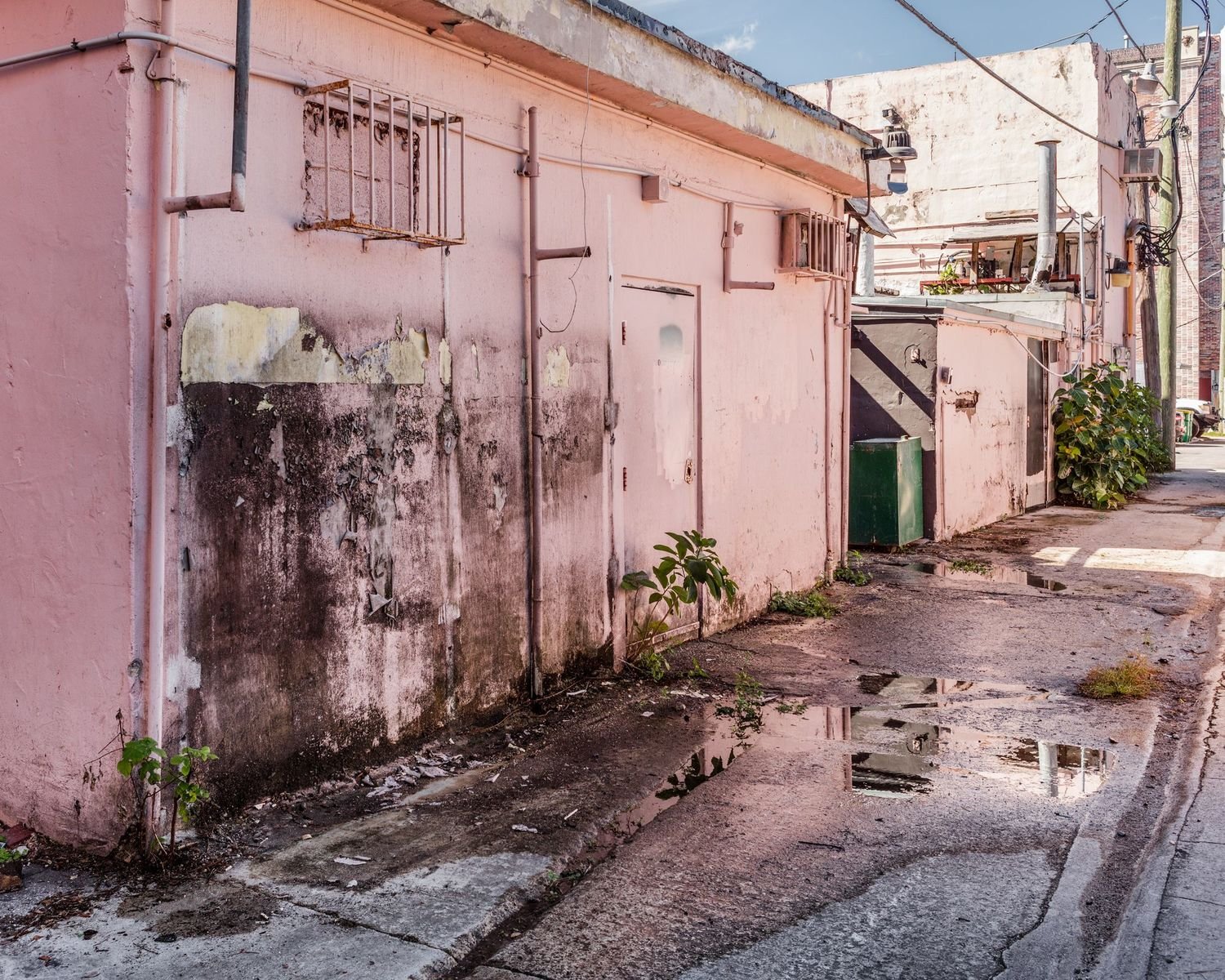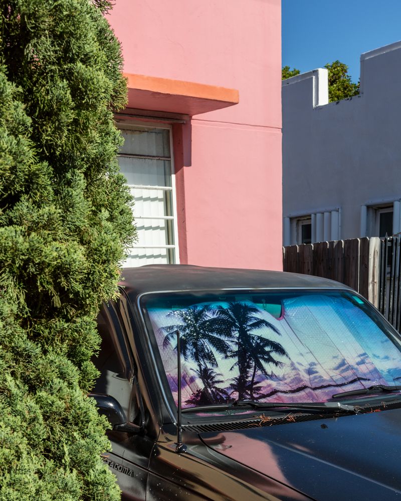 Now here in Miami, colors are also a trademark feature of the place – all those Miami pinks and candy-colored facades of art deco buildings. The newer buildings are also being absorbed by billboards and advertisements and brochures with those standard images. It’s definitely weird, but it’s also a gold mine for my interests, in a way.