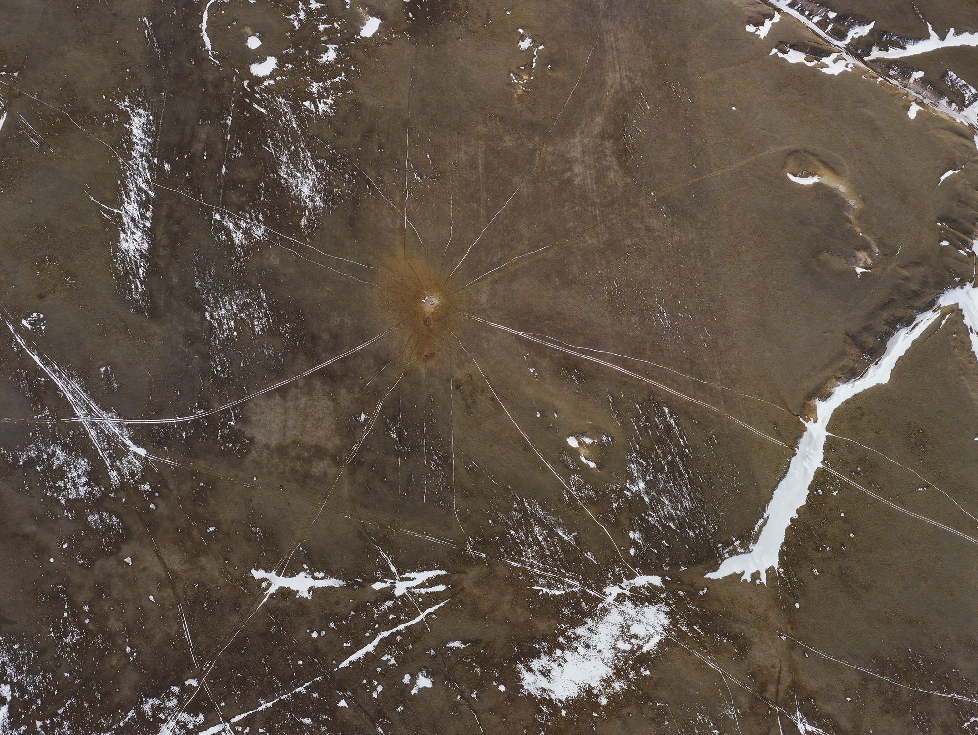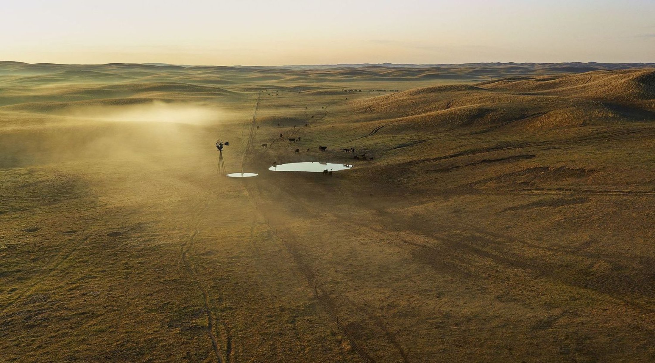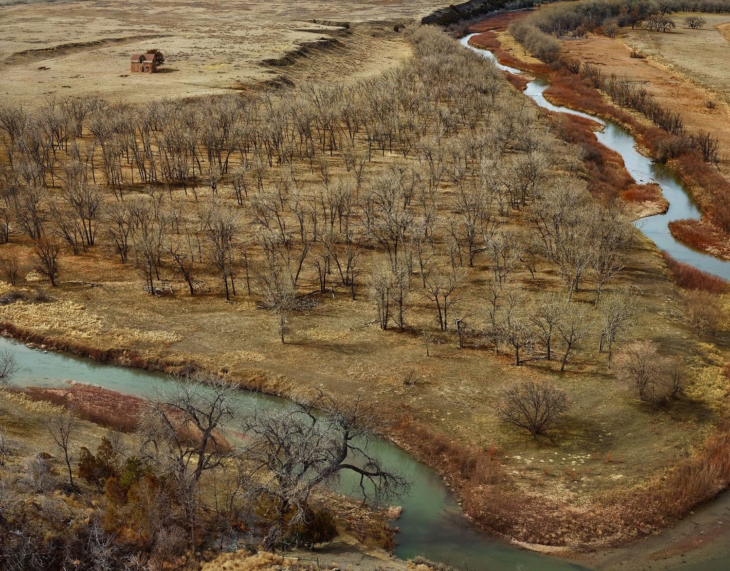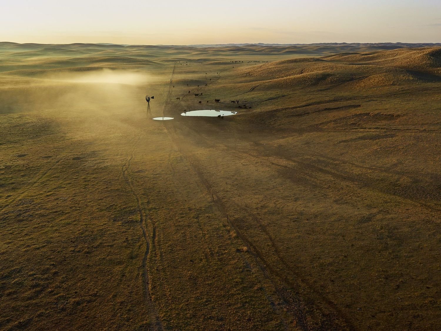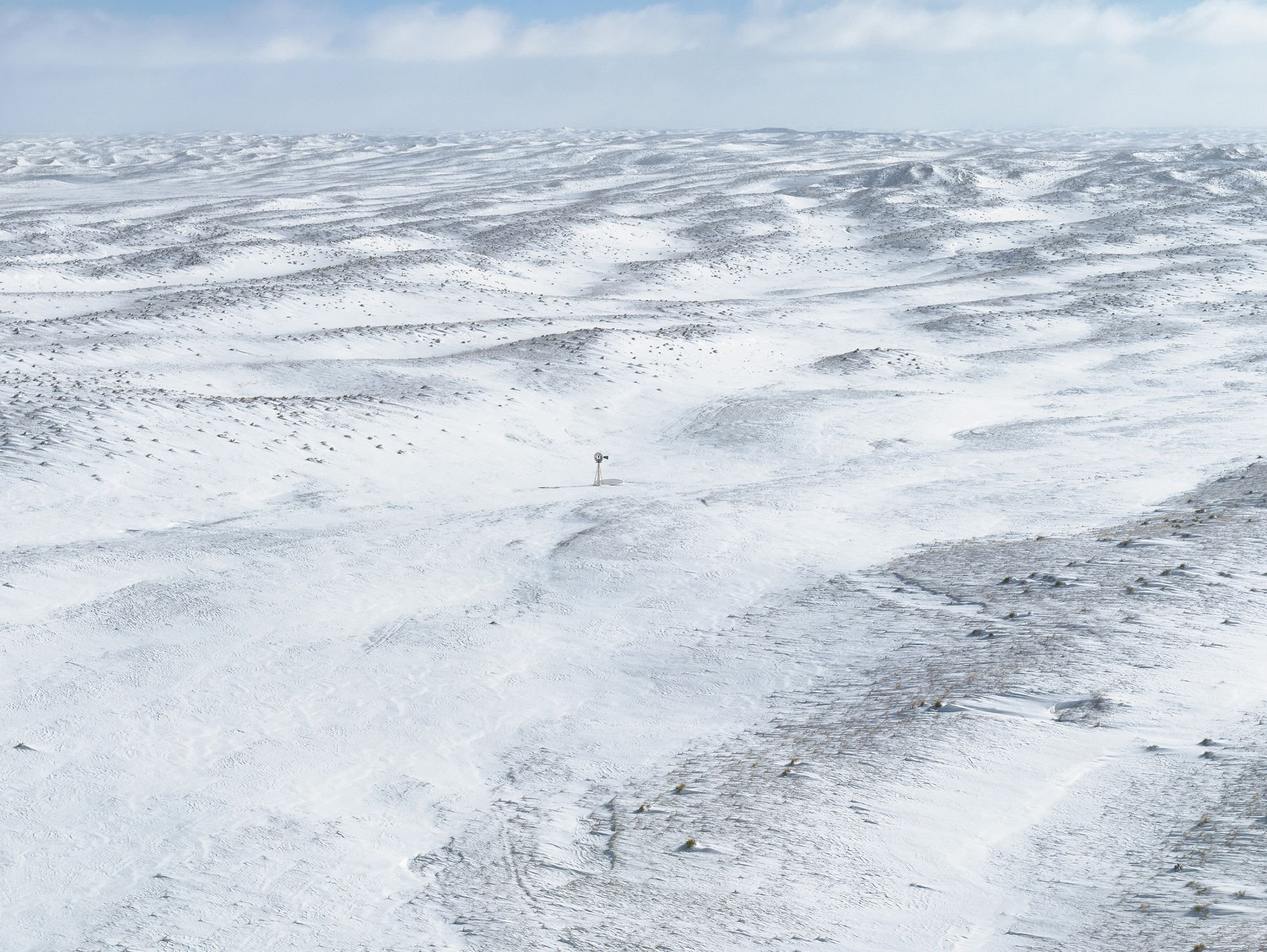 Yet it was also obvious that there were great images to be made from the air, especially if Doug flew at a low altitude. Over the course of that next year, we devised a means for placing a high-resolution camera on the strut of the plane, which could be remotely operated from the cockpit. This greatly expanded our picture-making options, as we could now travel to just about any location, quickly and in most weather conditions, and shoot either on the ground or from above. Most of all, flying close to the ground—at the height of a windmill and sometimes lower—allowed us to make pictures at a perspective in which the intimate seemed conjoined with the infinite.