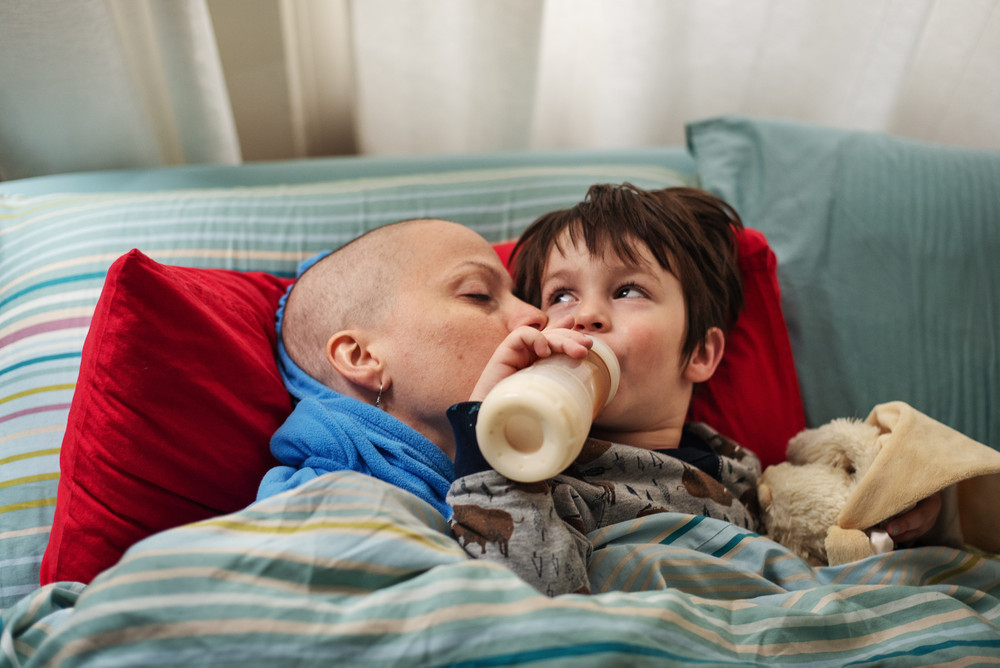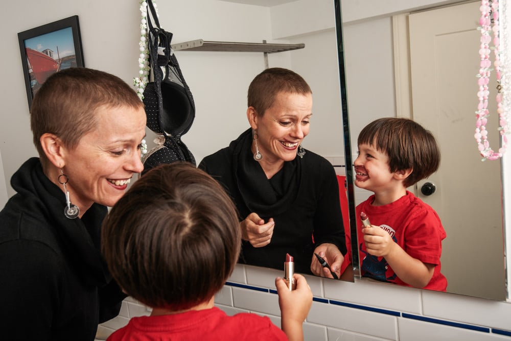 At age 37, Anna Rathkopf was diagnosed with an aggressive form of breast cancer. HER2: The Diagnosed, The Caregiver and Their Son is the body of work that emerged from this experience; a project partially invoked as a response to not being able to find relatable imagery of this new and overwhelming trial Anna, her husband Jordan and their young son Jesse were suddenly faced with. A photographic duo by trade, the couple turned their cameras on one another and themselves to navigate the illness that upended their lives. Seven years later, the photobook HER2: The Diagnosed, The Caregiver and Their Son comes into the world during Breast Cancer Awareness Month (October) and National Family Caregivers Month (November).
