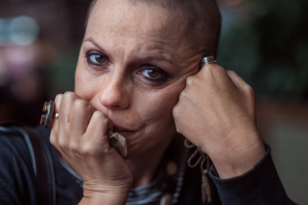 “I heard the word cancer, and I felt like my life ended. Yet there was the next morning, and then another one and another one.” Nestled three-quarters into the book HER2: The Diagnosed, The Caregiver and Their Son, this quote sits next to an image of a woman, head in hands, being embraced by another on the steps of one of New York’s brownstone buildings. Perhaps a fleeting moment from one of these mornings, the photograph holds the weight of the world in one frame; a scene of exhaustion and care.