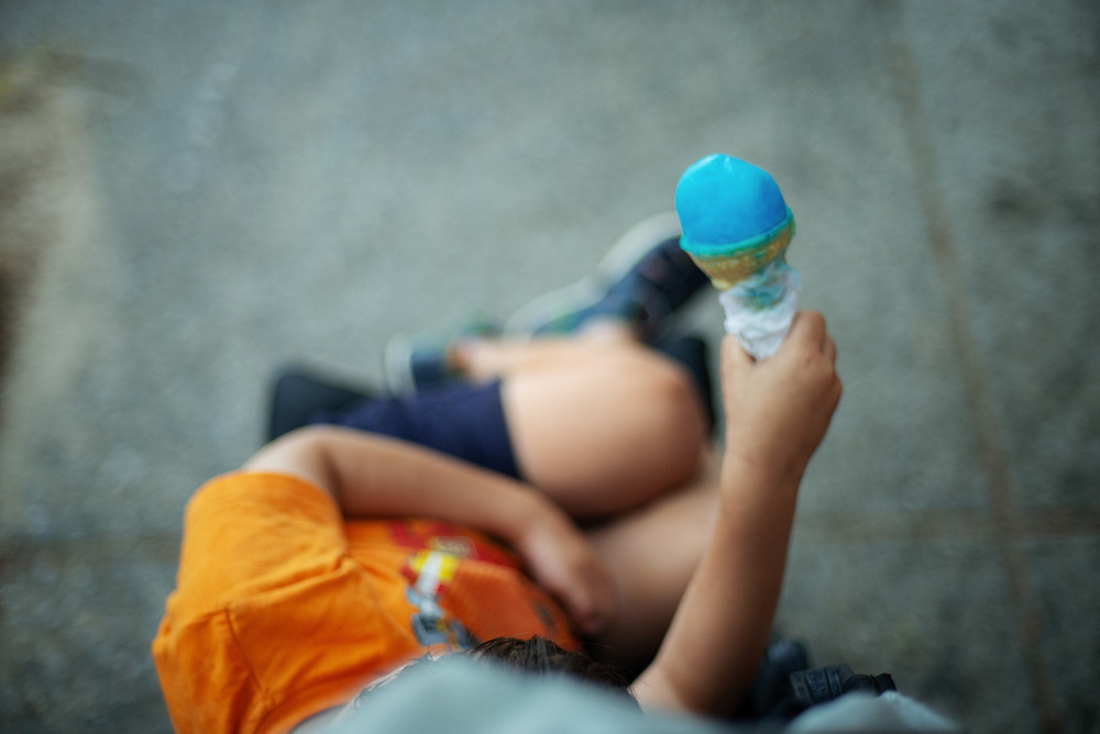 Anna and Jordan’s son Jesse bounds through the book as a colorful presence, full of hope, love and energy; a bright blue ice cream, a painted portrait of his mother, a face scrunched up in the golden sunlight. A salve to the sterility of the hospital, Jordan’s portrait of his wife and son smiling and embracing in a body of water is like a tender note of gratitude to what connection can do in times of need. The realities of dealing with childcare whilst illness is in the family are present too; a photograph of Jesse blowing out his birthday candles is paired with a photograph of Anna exhausted and unable to participate in the celebration. Jordan’s parents, including his mother, who was diagnosed with cancer when he was a child, and Anna’s mother, feature as caregivers as well, showing the wider edges of the system of support holding the pair up through this time.