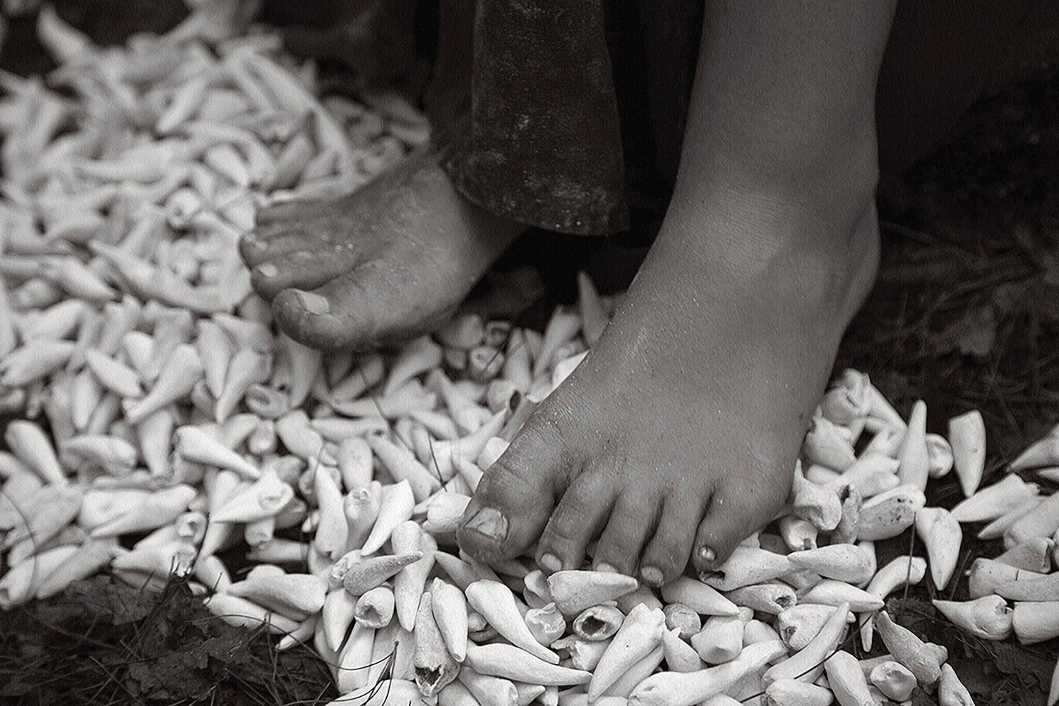 The installation, constructed like a simple maze, immerses us in art that engages all of our senses. A dozen more images of these creatures, printed on larger matte paper in a subdued green, hang between towering branches. These prints—known as anthotypes, a photographic technique that relies on sunlight to imprint images onto paper coated with plant extracts—give the entire space a subtle woodland scent that deepens our connection to the environment represented. While every element within this tactile exhibition asks to be touched, smaller photographic transparent images grace a light table, unmistakably designed to invite interactive engagement.