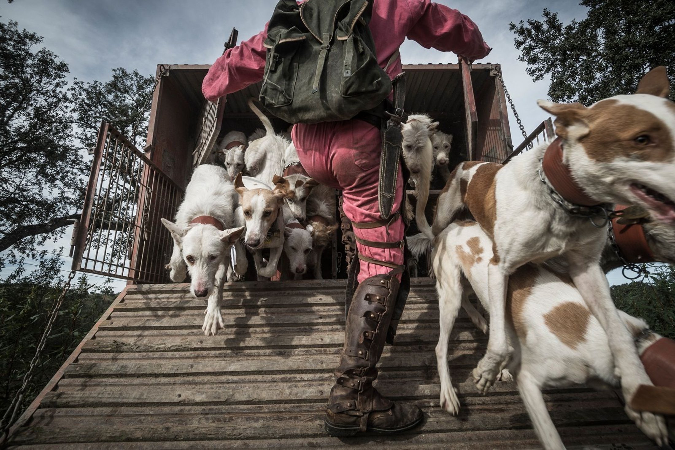 Logo nos primeiro dias, durante uma “enxota” ao javali nos campos de milho de Montemor-o-Novo, tive a sorte de cruzar-me com o José António, mais conhecido por Berras, dono da matilha Tempestade de Mora. A personalidade, conhecimentos e experiência deste caçador e do Nelson, o seu ajudante e amigo, levaram-me a segui-los ao longo de várias caçadas.
