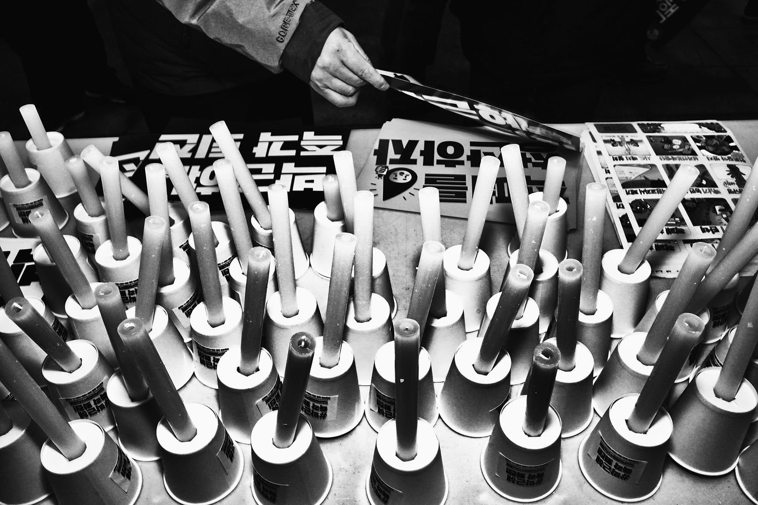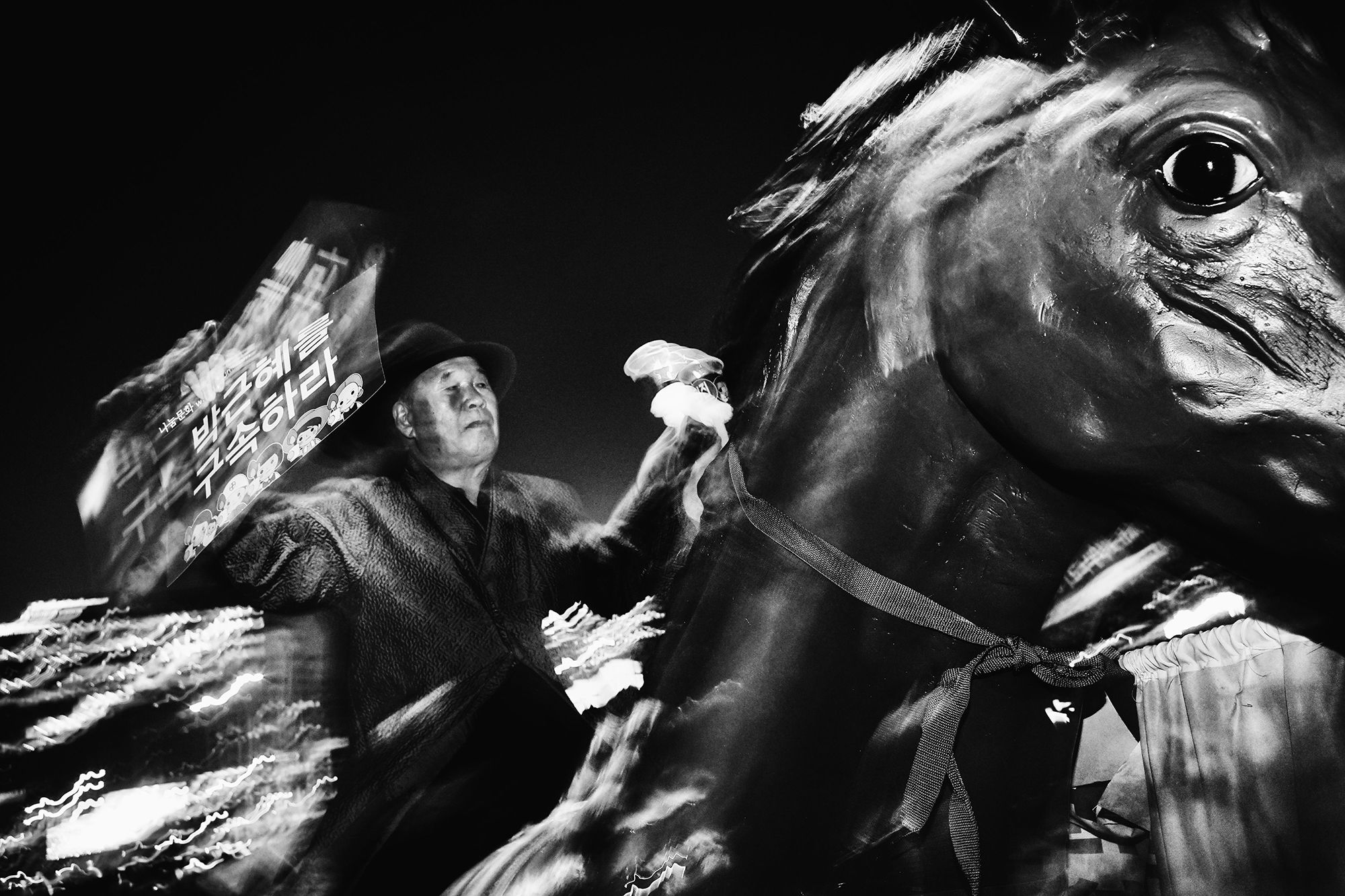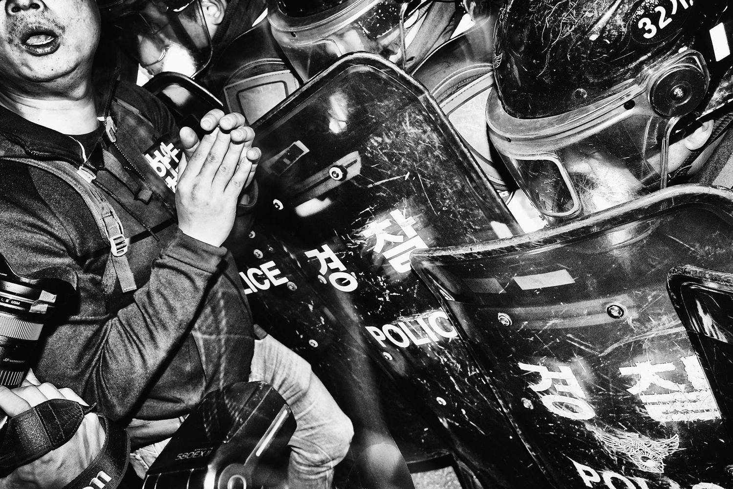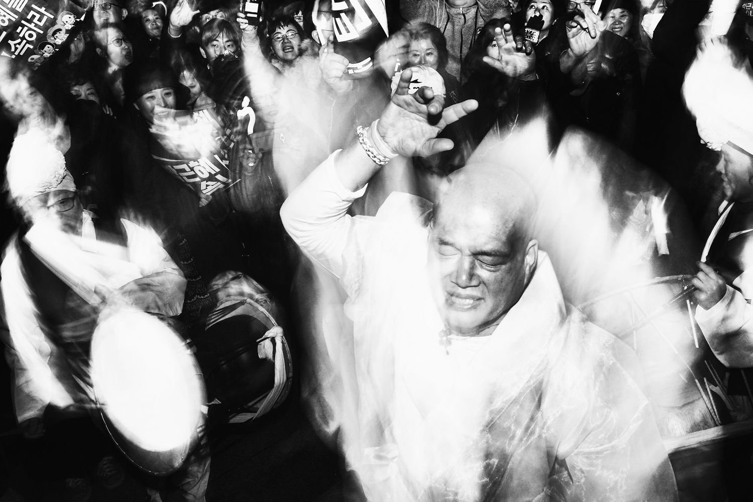Asked specifically about the origin of this striking series, he says, “I remember hearing about the first anti-Park Geun-hye protest on an airplane flight back to Seoul. I immediately knew that I’d be on the street documenting it.”