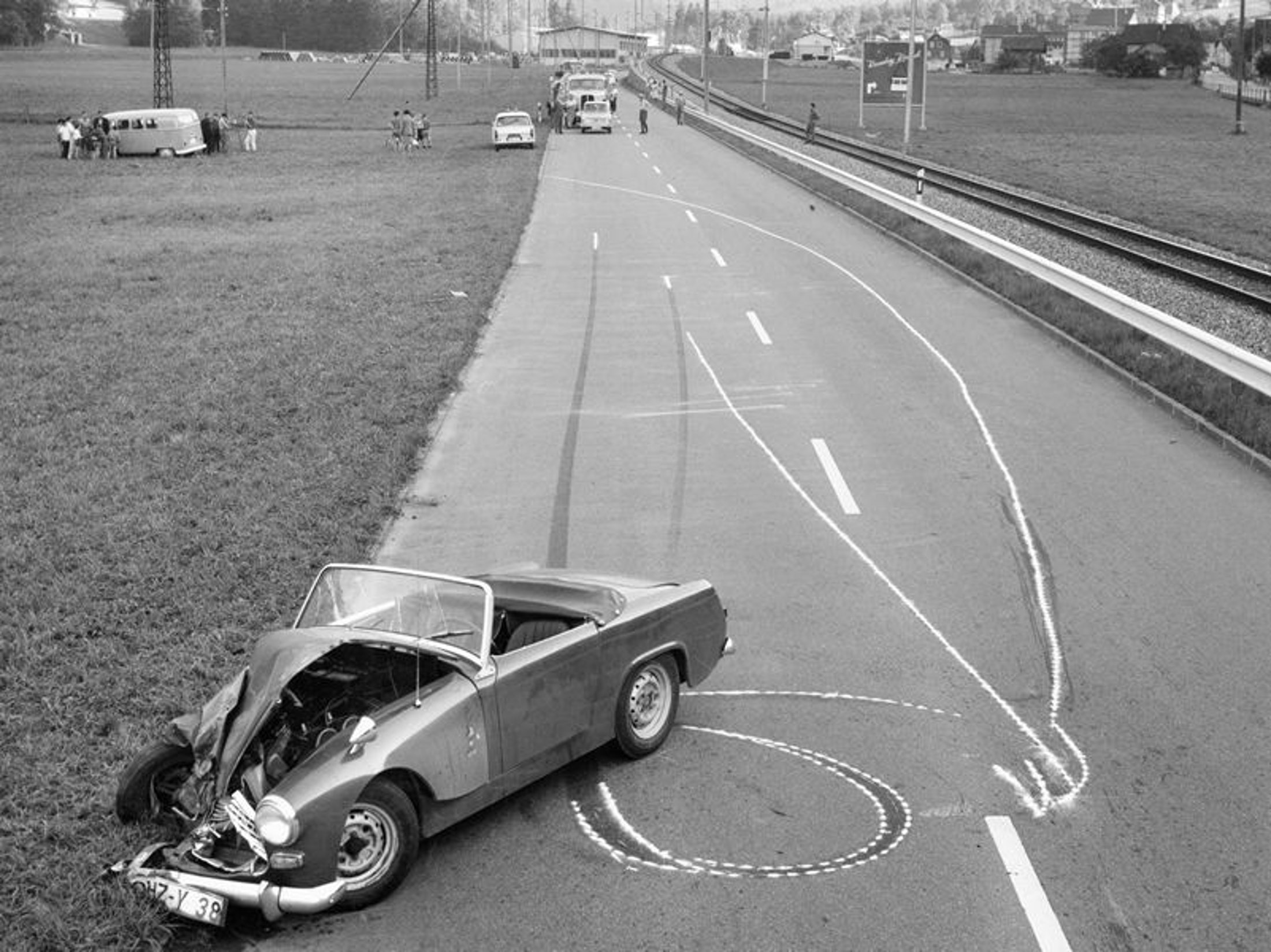 Arriving at the scene of an accident, Odermatt would take one set of photographs