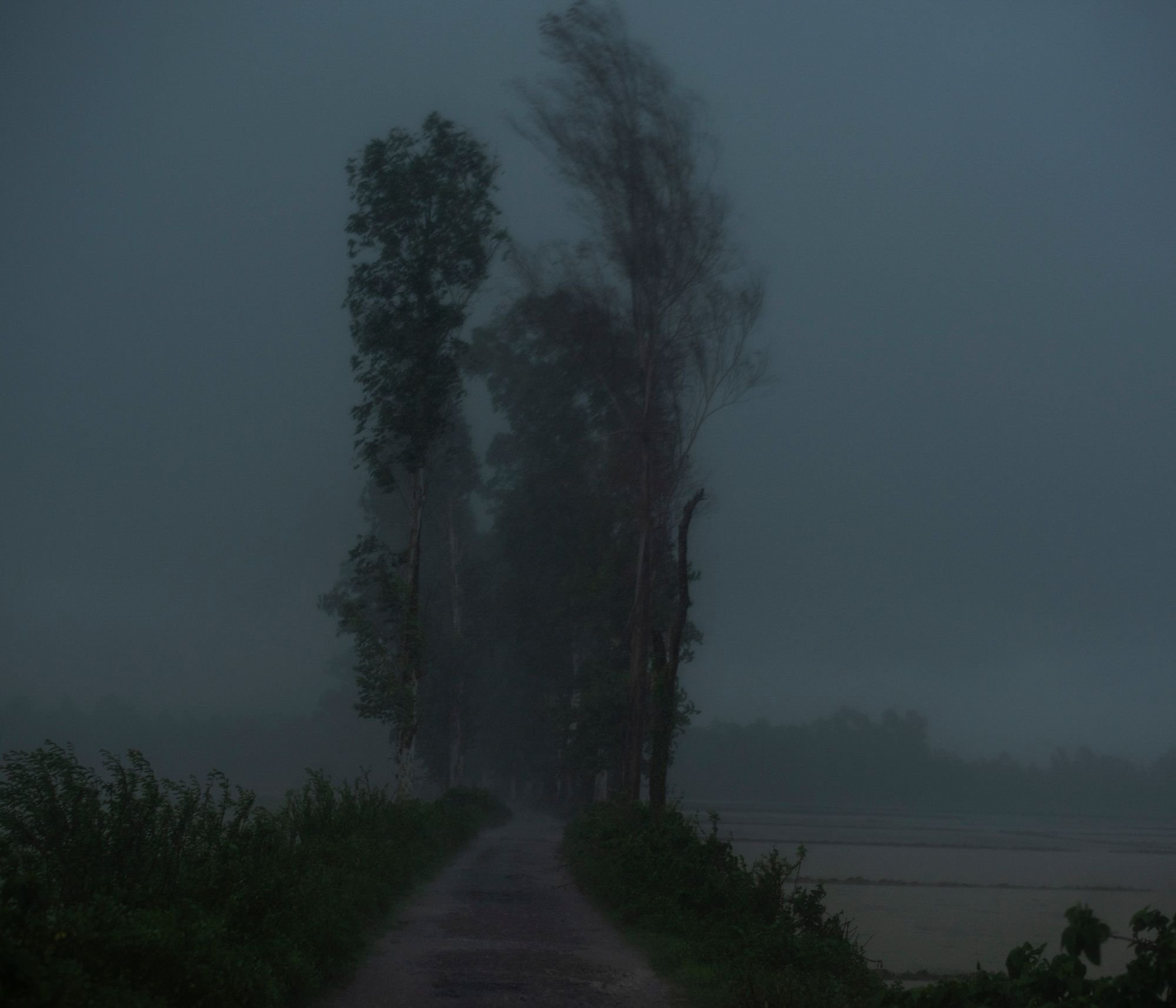 Trauma psychology requires people to tell their story to heal. The landscape depicted in Files of the Disappeared whispers with somber desperation to tell these stories. The photographs of the landscapes where the altercations took place transform what could otherwise be cinematic, nostalgic landscapes into sinister spaces. The allure of imagining crossing the swaths of grass, rice paddies, foggy twilights, wind-whipped nature, is averted by a chromatic treatment turning the depicted terrains into places without refuge. Rahman depicts these foreboding landscapes as spaces where voices echo and become lost to the land, yet the permanence of the deeply haunting narratives remain etched on the faces of the people she photographs.