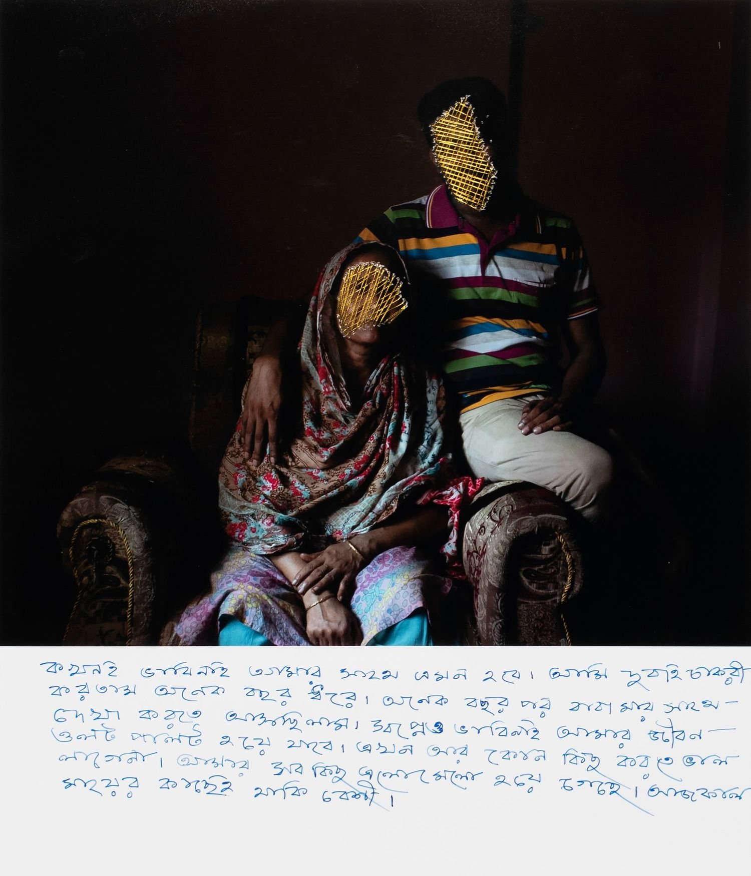 Abysmal silence and impressions of darkly drenched landscapes and faces sewn over by gold, Ashfika Rahman’s photographs in Files of the Disappeared piece together stories of erasure. In recent years, more than 4,000 young people have been taken by police force in borderlands in Bangladesh and Southeast Asia , without reason or justification. Their lives after confinement and torture are hushed and silent.