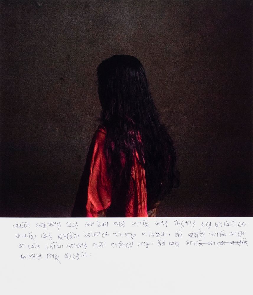 In several of her projects, the photograph is a site of alienation and alteration. The bold visual gestures represent a fervent step towards judicial and moral confrontation. Rahman’s projects become situated as documents that contain a painfully poetic plea to make hidden emotional scars visible by using every means but the voice itself. Her work could read as a private look into the journals of humans who sought to find light and life while trapped in psychological prisons.