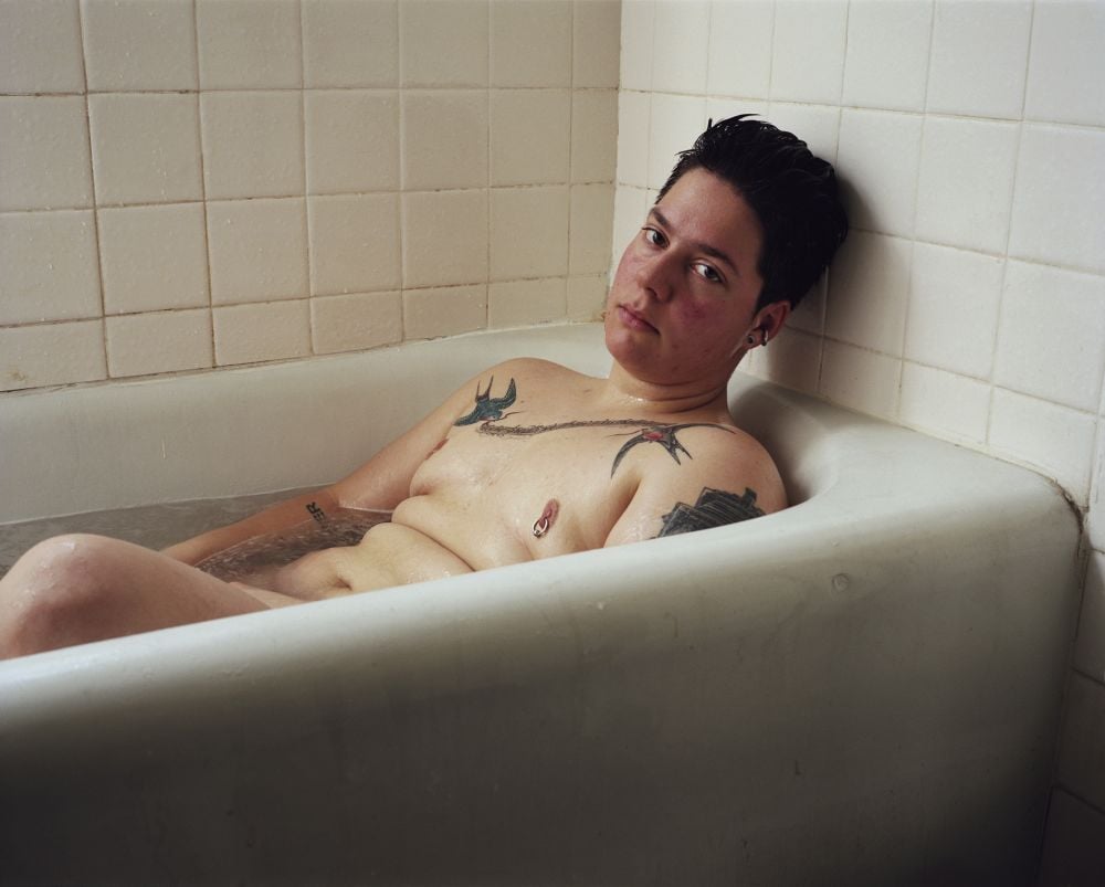 Jess Dugan’s intimately staged “Self-portrait (bath)” confronts us head on with the pain as well as the perseverance associated with carving out one’s identity.