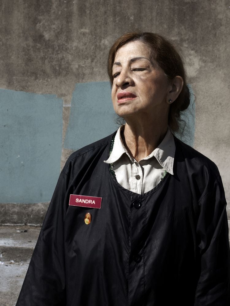 Finally, Elizabeth Bick’s image from her “Beatification” series focuses on a woman whose identity is worn on her clothing. This detail, her nametag, serves as a reminder that our name, like our face, is the gateway to our identity—without one or the other we are somehow less visible. Like many of the subjects in this show, in the hands of this artist, Sandra is elevated beyond her ordinary status. And standing in front of this, like so many other faces in this show, we are invited to look and to know each one of them as belonging to significant elements found in each of us.
