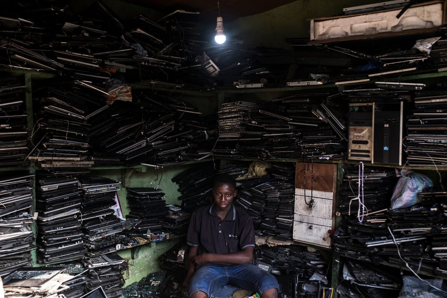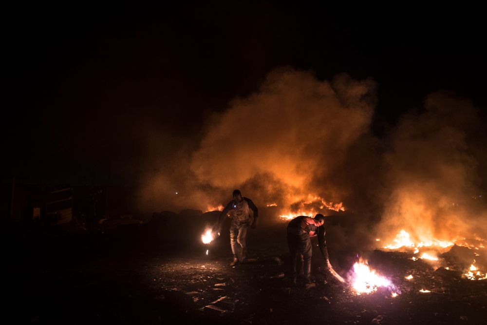 The burning area is part of the scrapyard where outdated computers and phones are burned. These items are first shipped to Ghana, and some of them are reused, some others are recycled, and when they can no longer be used, they are burned to extract raw materials. This unregulated process causes toxic emissions and soil and water pollution.
