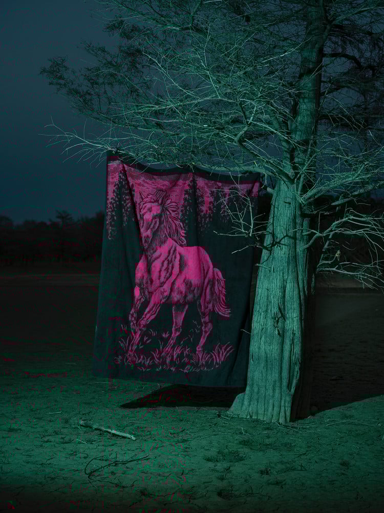 The luxurious part of the book is not the most obvious: the gorgeous offset printed images in rich tones that switch from shades of gray to colors both otherworldly and distinctly real, and the 3D embossed cover. It is in the drape of flesh, the clay of skin, and our awkward performance as humans playing out on soft folds of fabric and stained garage floors, aping animals in the forest, emerging from the mud, transformed.