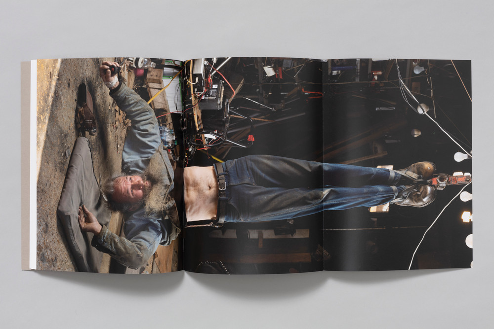 In the book’s central images—the hanging man centerfold and the artist in drag—an exchange of roles takes place between the photographer and her model, Wallace. Drake let him photograph her in his clothes, and she photographed him in hers. “I actually loved wearing Wallace’s clothes—they fit me. I felt very comfortable in them. I didn’t feel like I was in male drag because I wear clothes kind of like that.” Wallace felt that some of her poses in his clothes were stereotypical. Drake says: “There’s a whole universe to acting which takes attention and empathy, I realized in that moment. For acting that feels real and human, it’s not that simple.”