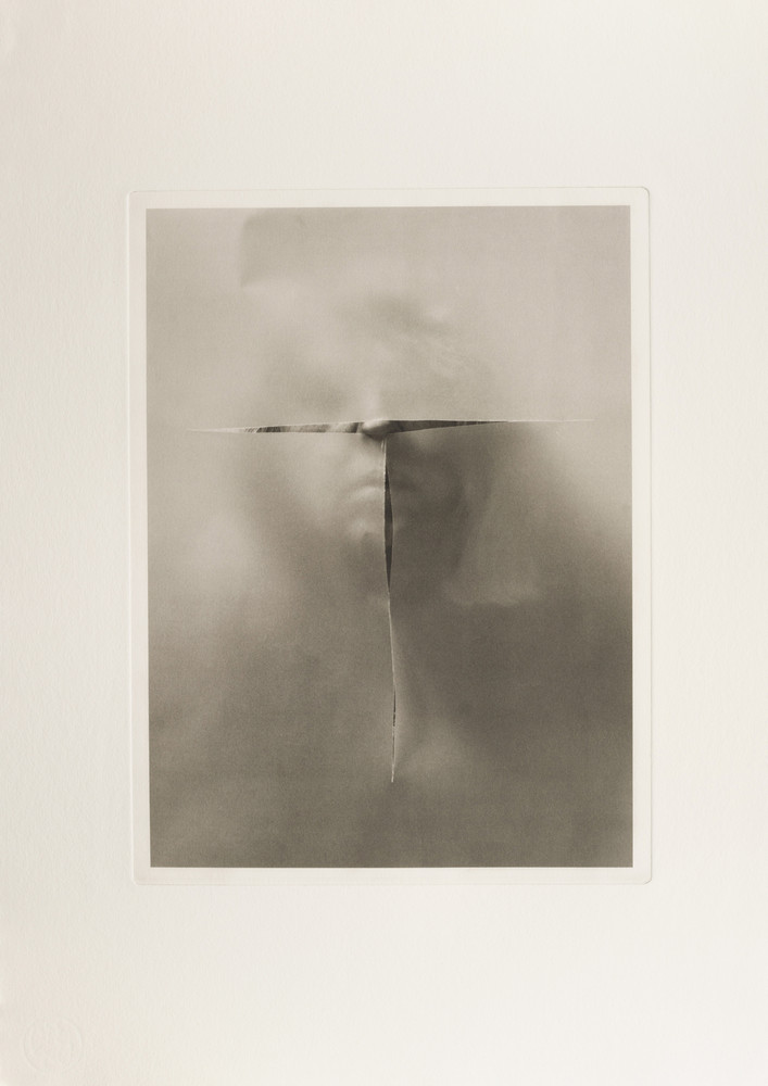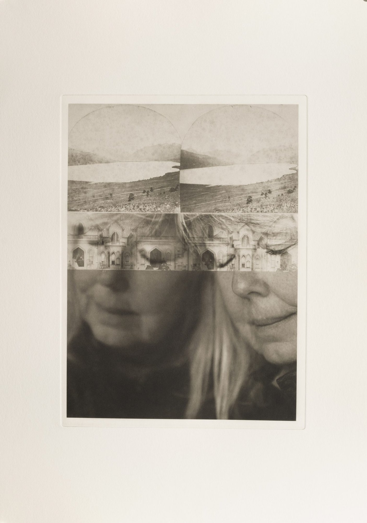 Using the photogravure process, Cone’s images retain an aura of otherworldliness. The tonal quality is velvety, one might even say sensual, adding a physical form to the dreamlike compositions. Photogravure, a process in which a photographic image is etched into a copper plate, provides a wide array of tones to the resulting impressions. The artist began to play with the process during a residency, finding her own intimate approach to the technique.