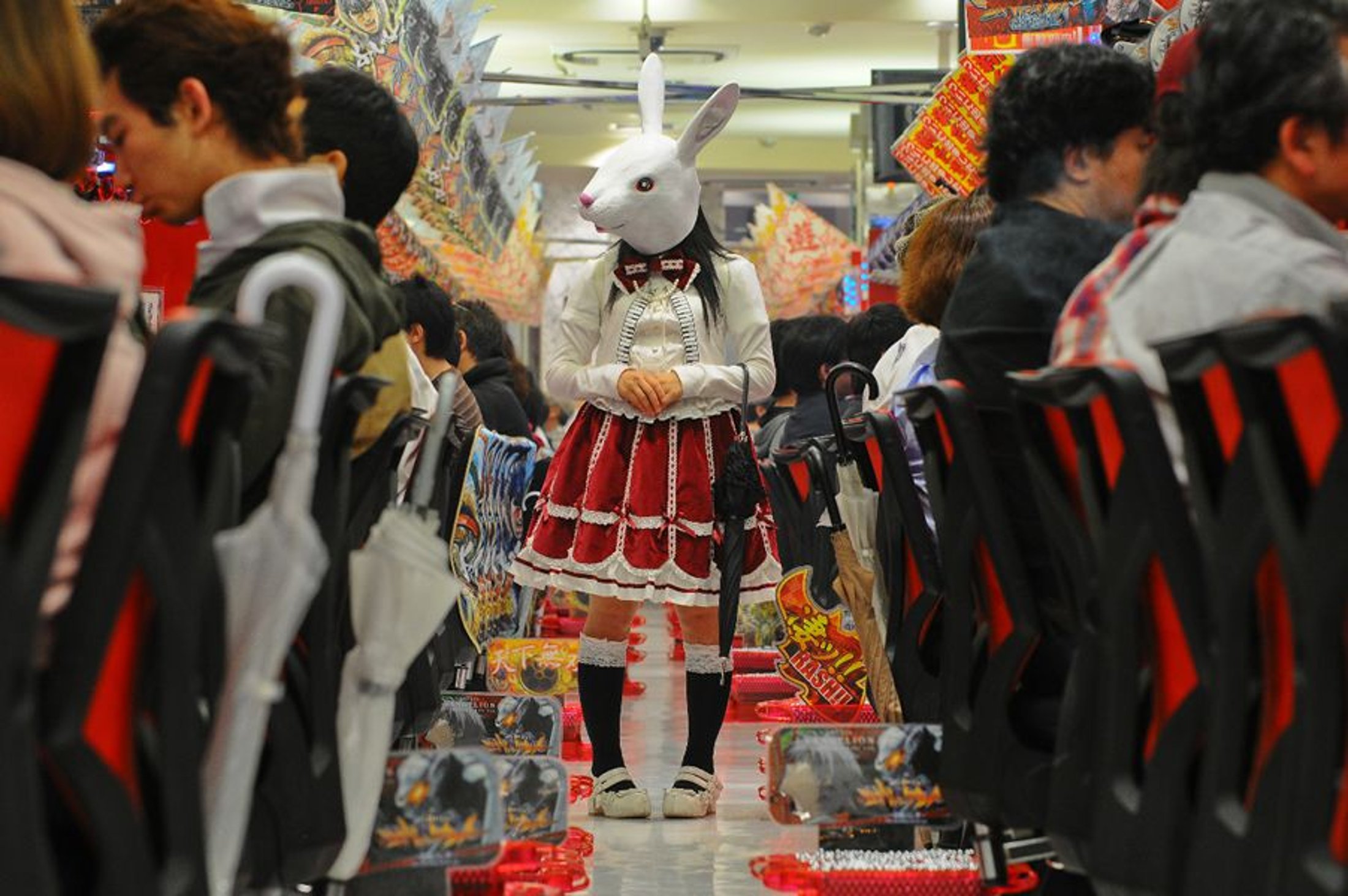 This is pushed to the limit in the technological and virtual wonderland of Akihabara in Tokyo, where shop after shop trades in electronic products and computer games, while a weird costume play, “cosplay”, is being performed in the streets. A similar kind of simulation is being acted out in the district of Harajuku, where Houge found some of his motifs. There is no authenticity here, no western “essence” or “reality”; instead, the virtual conquers the carnal body in a purified play of surface, image and the hyperreal. This is exotic. All the while as we are conscious of these notions as pinnacle points in a western idea of the post-modern. But in this sense Japan has always been “post-modern”. It has always integrated the most refined culture and technology from the outside while somehow retained an identity for itself. So, what would this identity be? Houge takes the view of ritual and play. Indeed, Japanese culture seems to be grounded solely on ritual, in business and in sex, in its relation to nature and in religion.