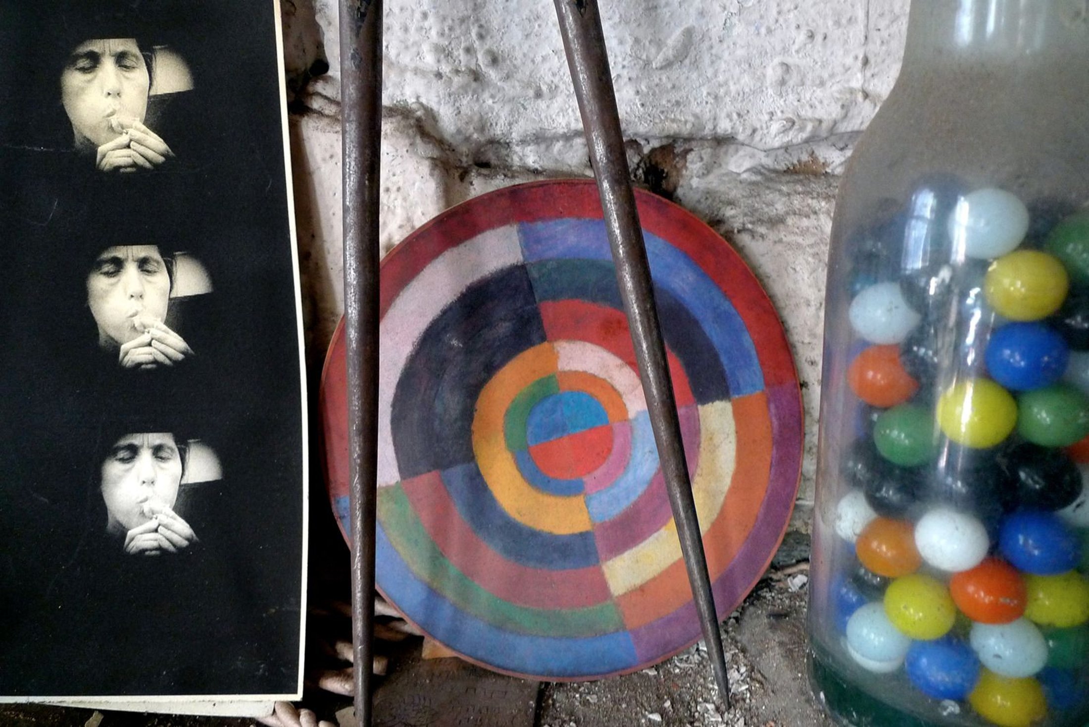I grew up having three artist parents, I’ve been a photographer since 1957 or 1973 (depending on how you count) and I’ve been a curator since 1975. Consequently, I am happy to find myself in artists’ studios often. I’m primarily there to look at their art but I love to savor the delightful conjunctions of objects and images in those studios – 2 and 3 dimensional collages that both create and result from the powerful artistic charge that is the lifeblood of an artist’s studio.