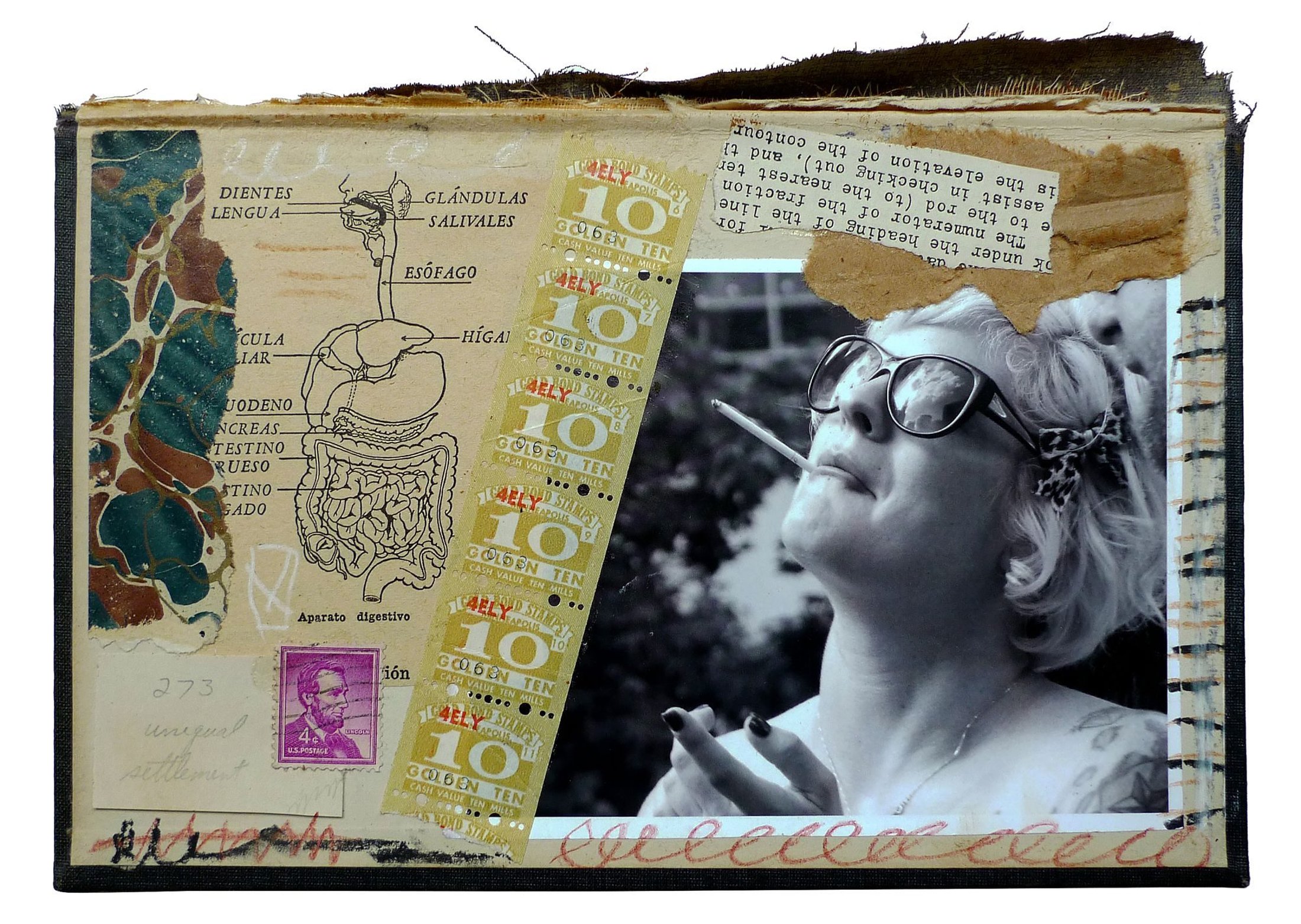 One Half Dozen, 2015. Mixed media, photography, collage on hardback book cover.