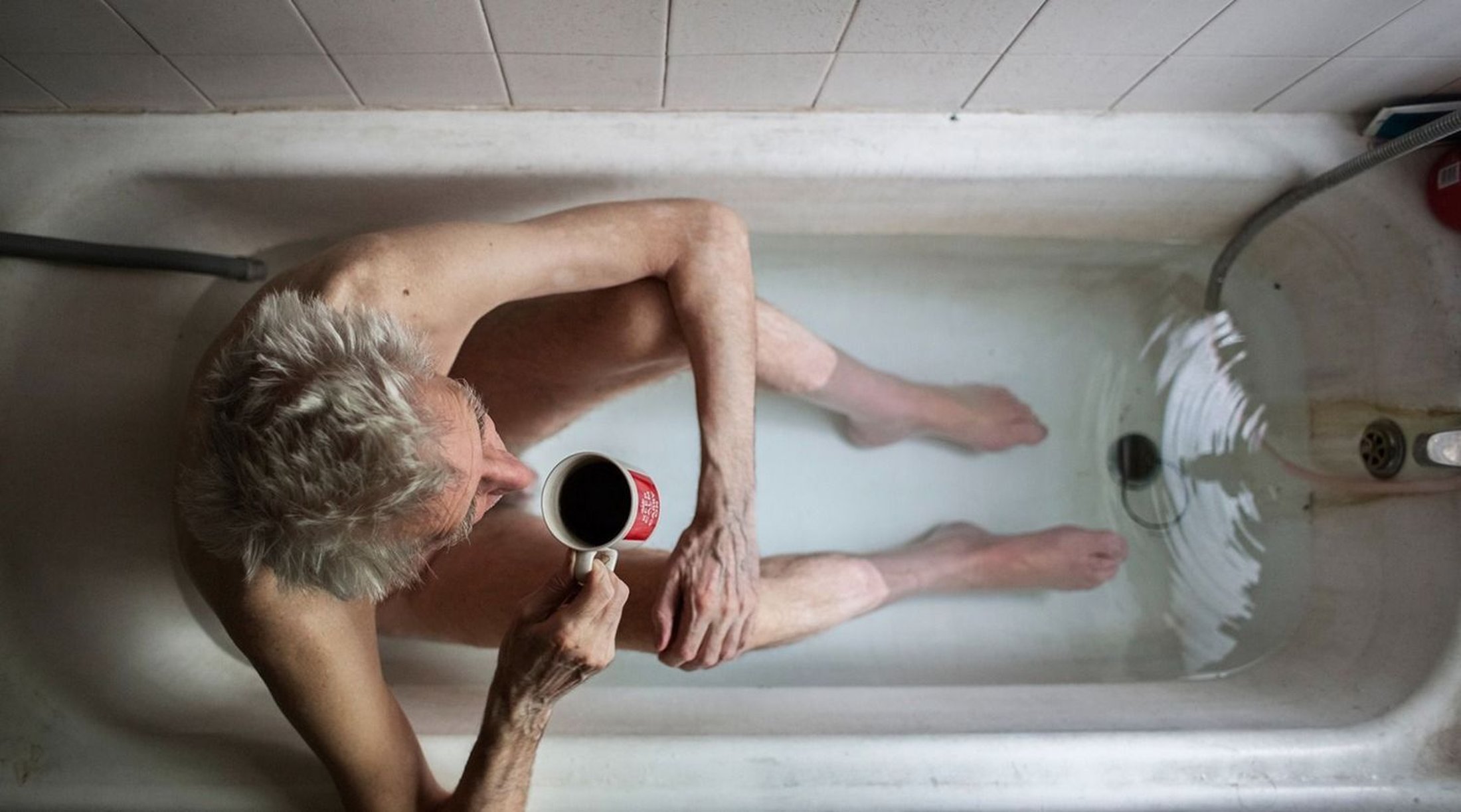 As one of the only accessible spaces, George’s bathtub has become the place where he washes the dishes, does his laundry, stores items or repairs bikes, where he has his coffee, reads books or, last but not least, takes a bath.