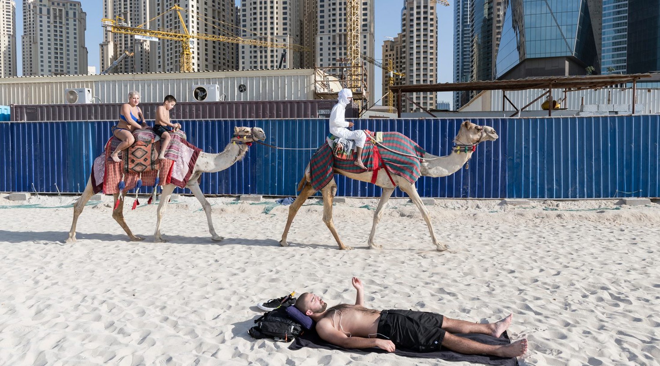Many of the exhibitions are designed to be unique memorable experiences — with clever stagings that immerse viewers in the over-arching theme of this year’s festival: More or Less. Irina Werning’s show about runaway inflation in Argentina, for example, is presented in a room that is wallpapered with nearly worthless paper currency from that country. James Mollison’s portraits and bedrooms of children from around the world are presented in a sprawling dorm room lined with bunkbeds. Documentary photographs of makeshift dwellings of illegal immigrants in Calais are presented wryly in the sales office of a fictive real estate company. Barbara Iweins’ obsessive cataloging of every single object she owns includes a large interactive file cabinet that holds a few surprises from her personal life. Nick Hannes’ mural-size prints from his project about excess in Dubai are lit like billboards on the outer walls of the hilltop Fortress that commands outrageous views of a Tuscan valley for as far as the eye can see.