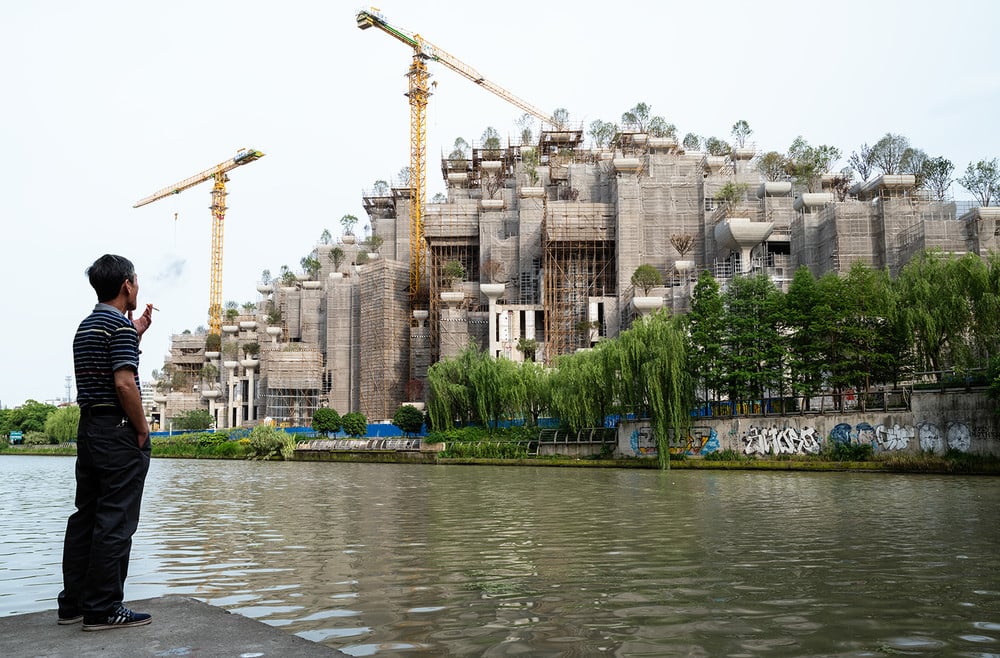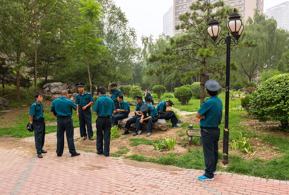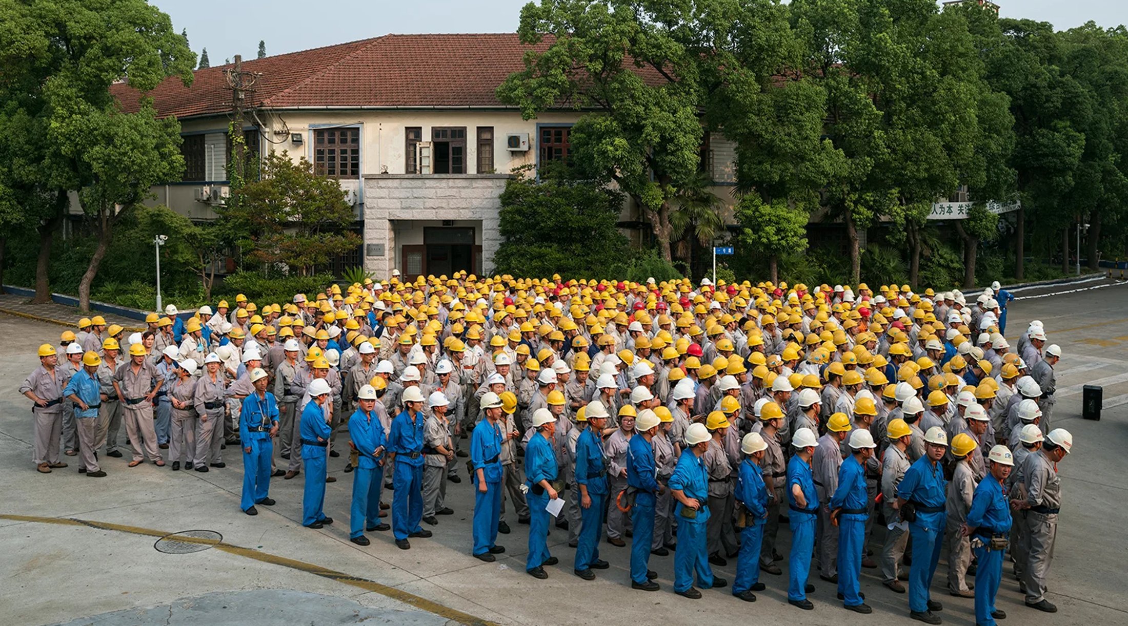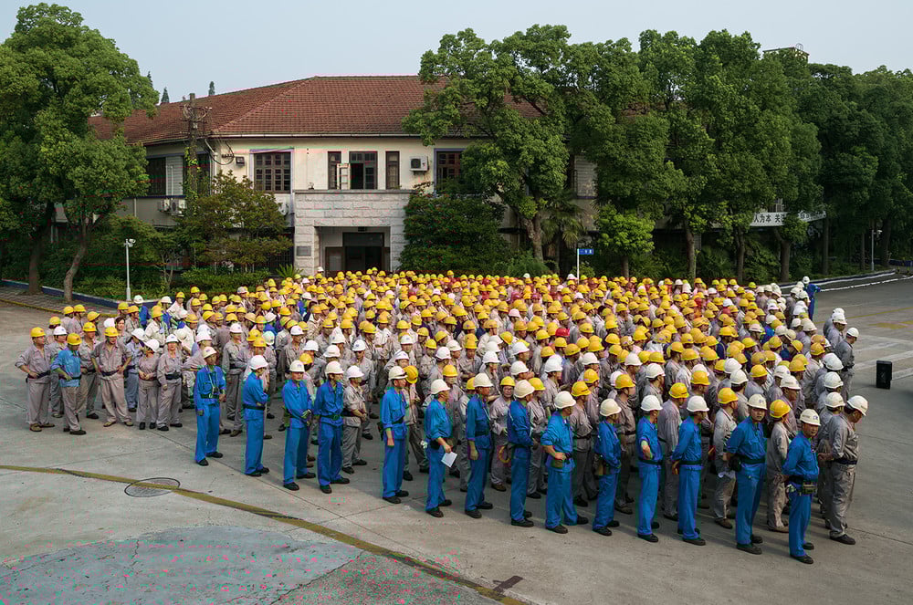 As he re-encountered the country through the lens, he began retracing his steps. An office building of workers bent over their desks late at night brought his memories back to his early Shanghai years—a self-portrait in a sense. A quiet street of young trees and the only inhabitant of a block of new high rises—a goat—wanders into the frame; a clever, strange comment on the rapid expansion and development Postaer has witnessed. “The locals used to joke that the national bird is the crane,” he quips. His images are named after their locations and feature two dates, one addressing the date the image was made and the other referring to the final print date. This span of time is inherent to how he thinks of his work. He describes his process as “constant conversation.” The work unfolds between layers of time that are built into his editing workflow. “The call that I had to go photograph mainland China was rooted in that desire to pause time so that I could understand more deeply,” Postaer reflects.