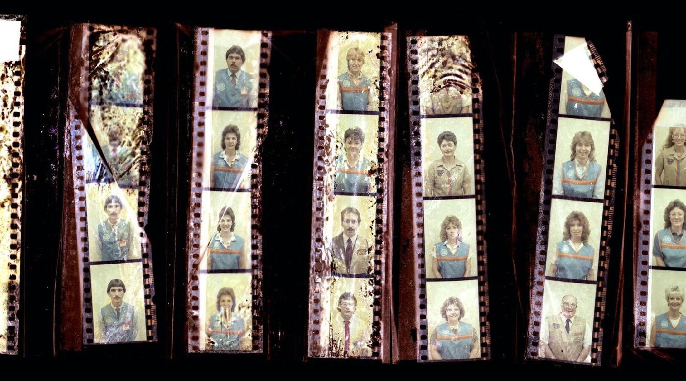 After peering hard at them, he said, “I sure don’t, Buddy. You can keep them.” Several weeks later I was able to scan them, and through the deteriorated film stock I realized that they were a rather odd find. The pictures were Wal-Mart employee headshots from the 1980s. I tried to make work with them over the course of a few years, never really taking them to their full potential. After arriving at Tyler School of Art for graduate school, I showed them during my second critique, and from that point on I tried a new approach with them. I was challenged by my colleagues and faculty to find out more about the photographs, who was in them, where they came from, and why they were made.