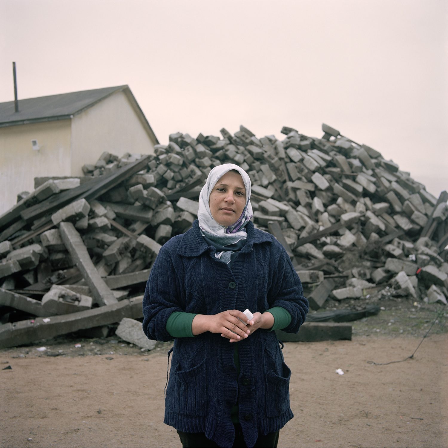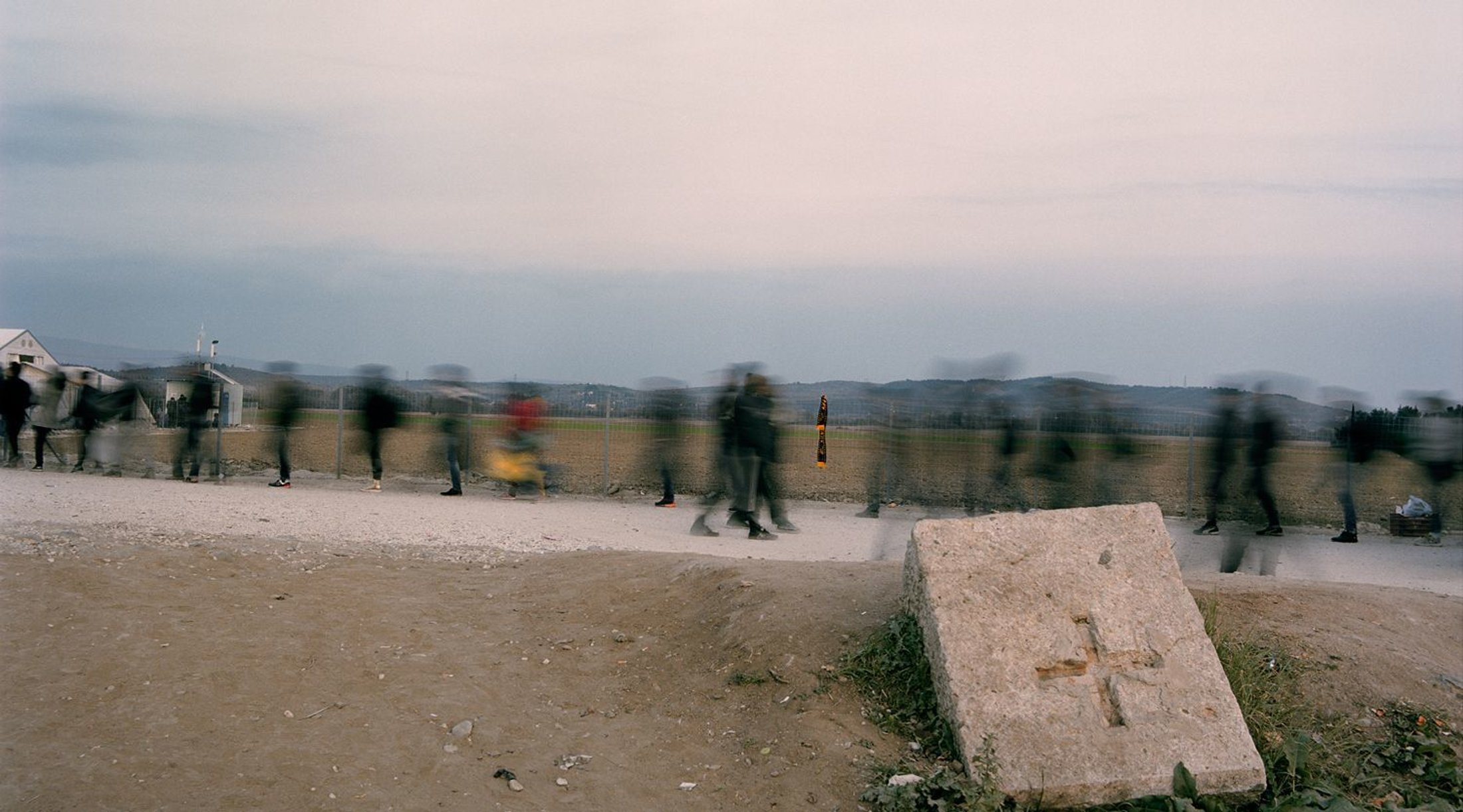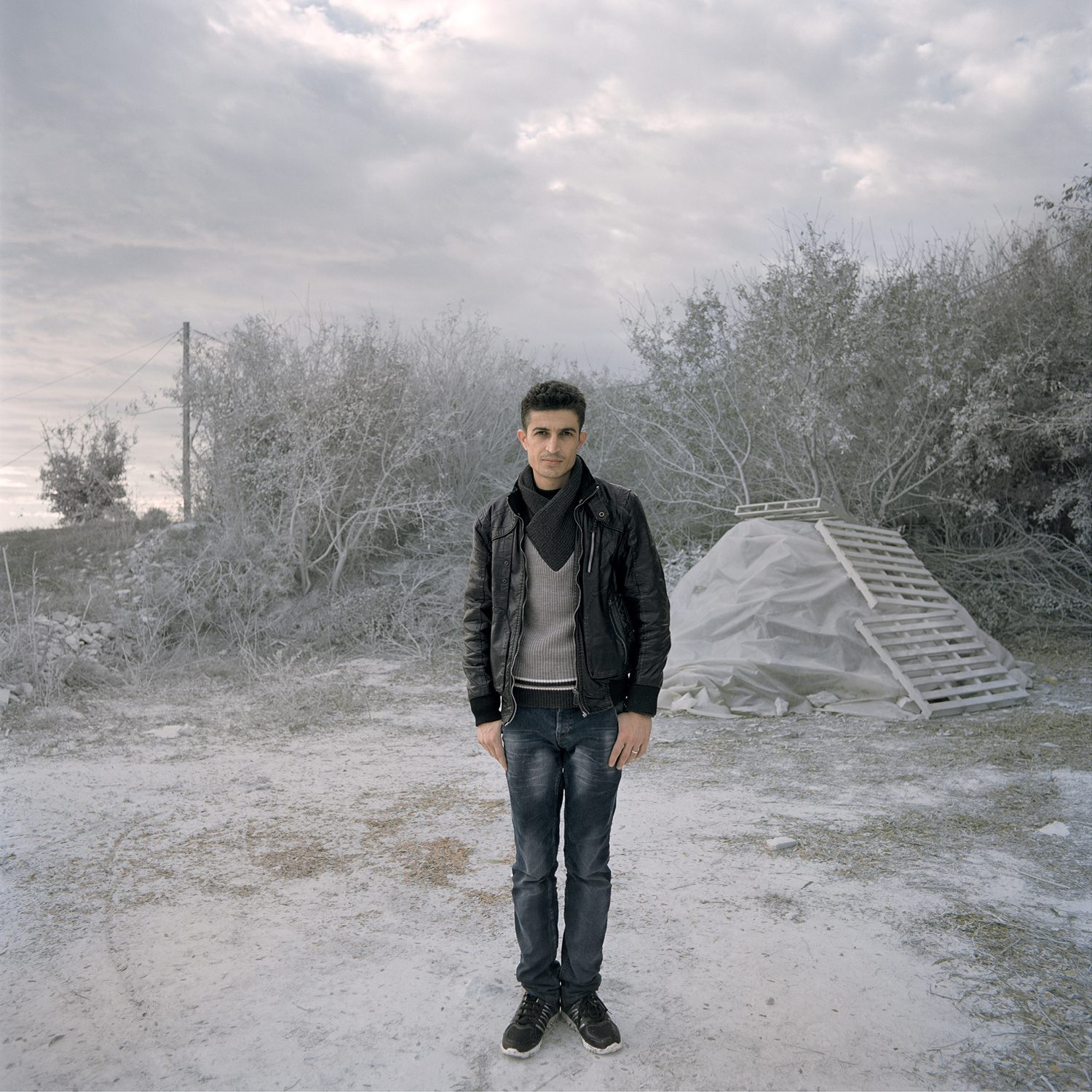 The characters in “Caesura” take on temporary identities as they pose for the camera in frames of transition and uncertainty. They embody ambiguous sensations of restlessness and tranquility; also present is a sense of timelessness and durability, as if these people have existed beyond time. They stand still in an in-between psychological state, on the verge of anonymity—suspended in space between two discontinuous moments. They are not a nameless mass: they have distinct identities and names, recognizable faces that reveal courage, determination and stamina. And yet, they are plunged into the melancholy of the temporary landscape in which they were caught: an eternal space characterized by the gloominess of the border scenery.