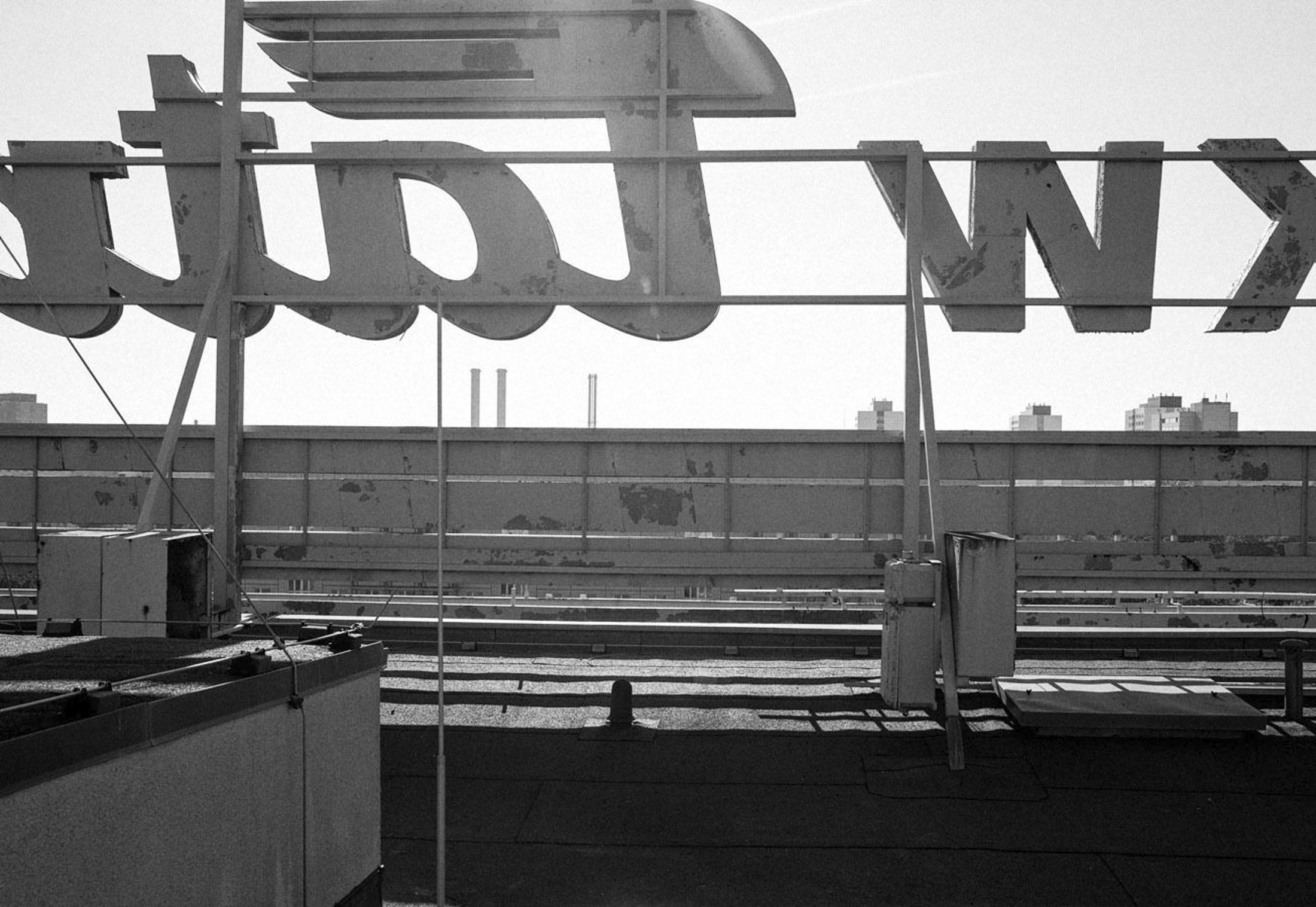 "For several years I climbed numerous rooftops to make pictures, over and over again. For a long time I didn't know exactly why; I simply felt attached to these strange, unknown and obscure places. I explored my city from a different angle and I photographed architectural situations up there being fascinated by the vastness and expanse as well as its limitation by moments of blocked sights. Eventually I realized that I had compiled a personal map - an imaginary walk in another dimension. "