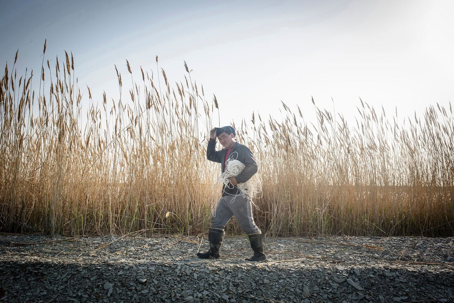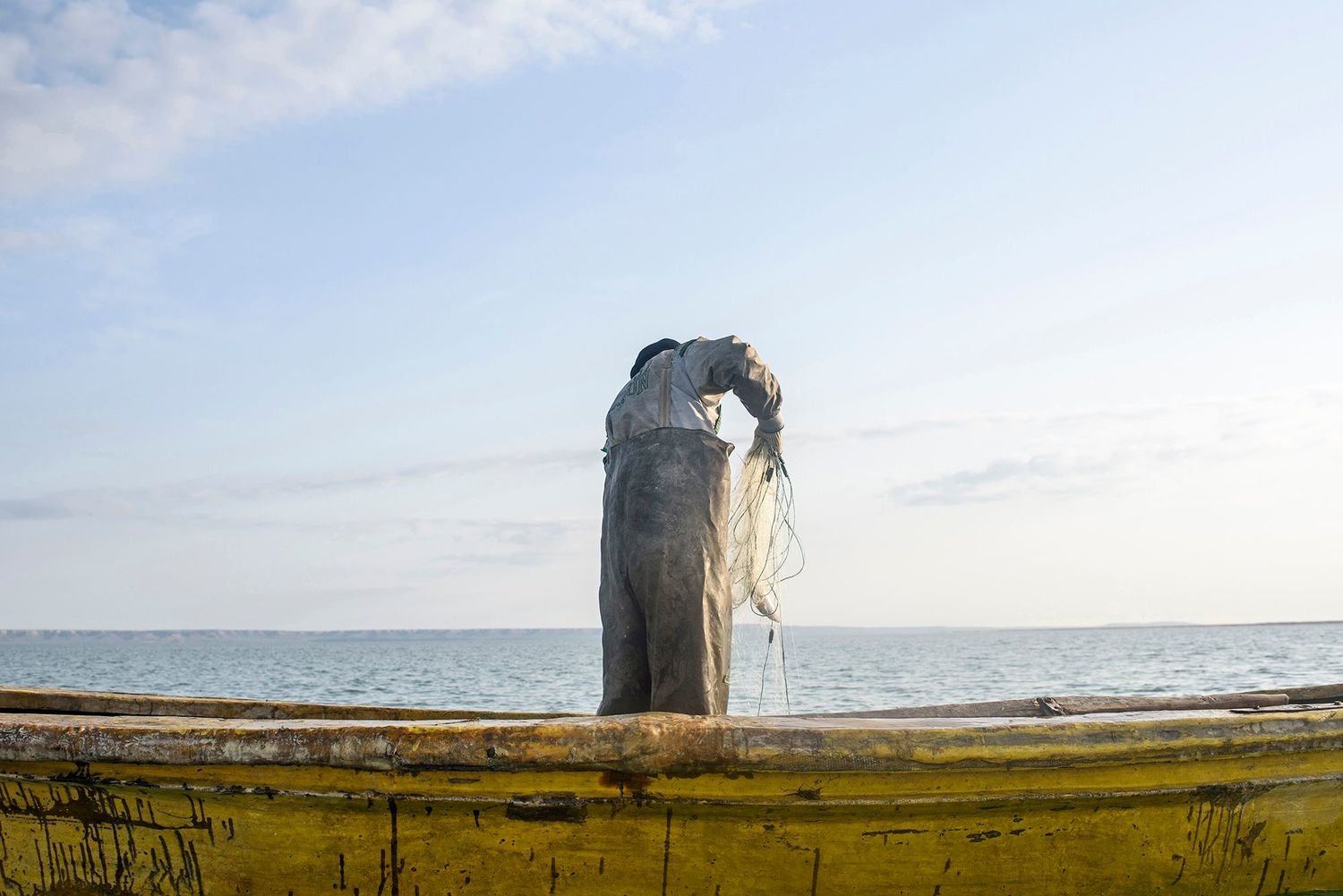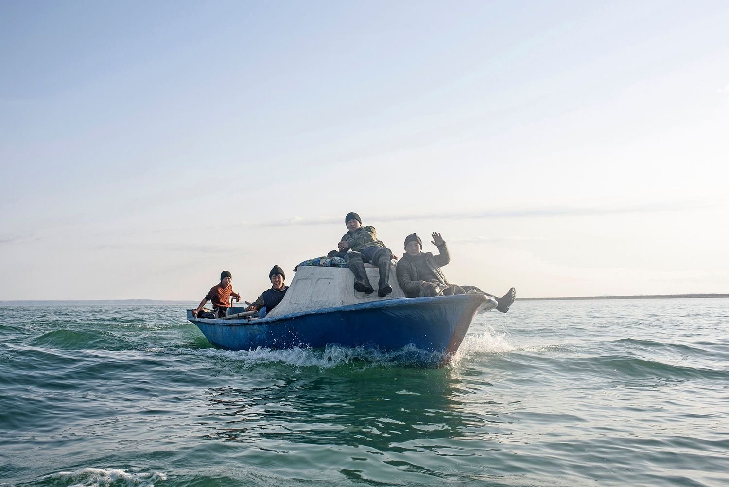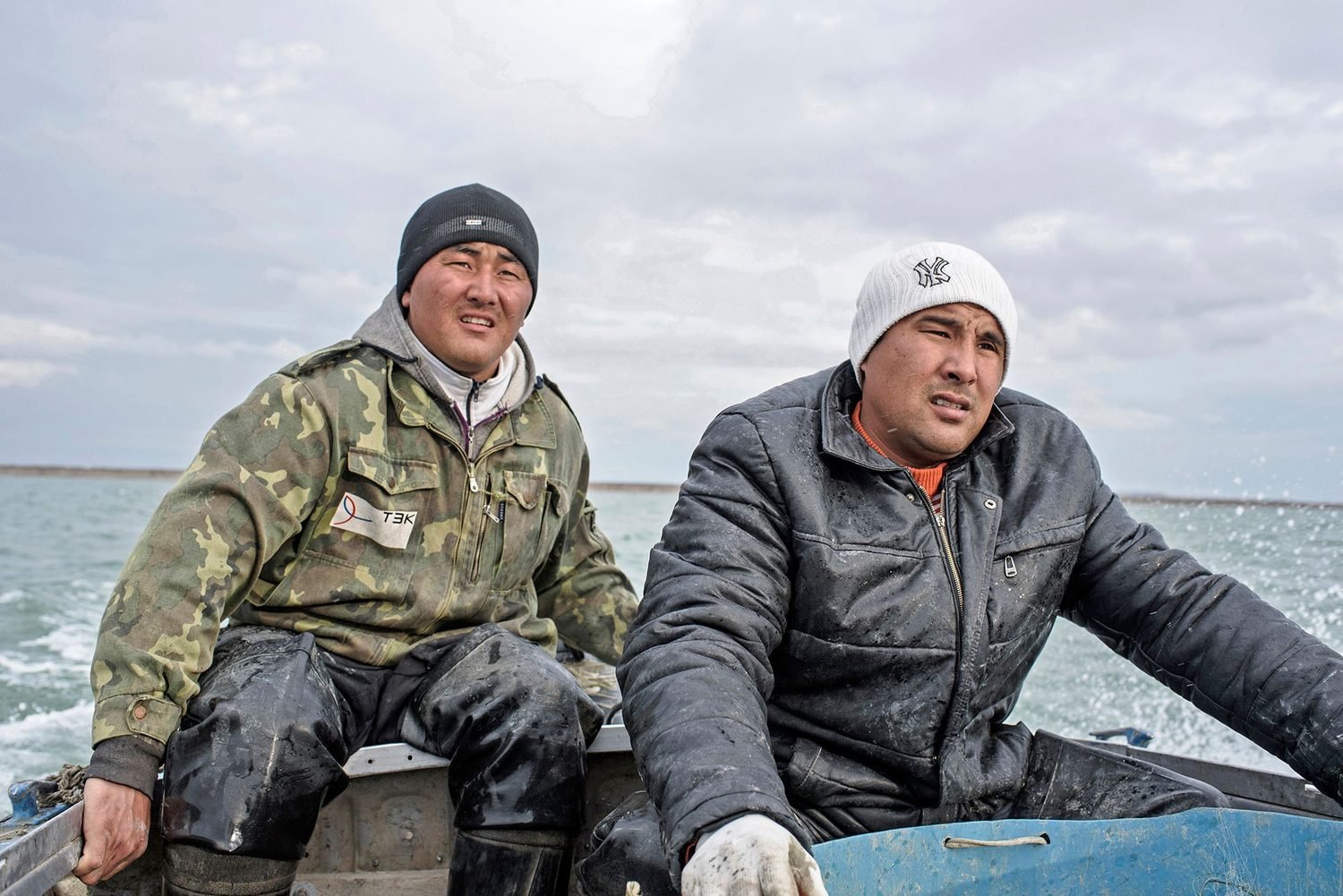 In the story, we glimpse the lives of Akerke and her husband Nurzhan, who moved to the village a few years ago. Improbably, they began to eke out a living as fishermen—an industry which seemed to have been completely wiped out just a few years earlier. But after the construction of the dam, more than 15 species of fish reemerged. Fishing production expanded once again, from an all-time low of 600 tons in 1996 to 7,200 tons today. Bracing the 45°C heat in summer and the -25°C winters [from 113°F to -13°F], Nurzhan and his fishermen friends work 7 days a week to survive.
