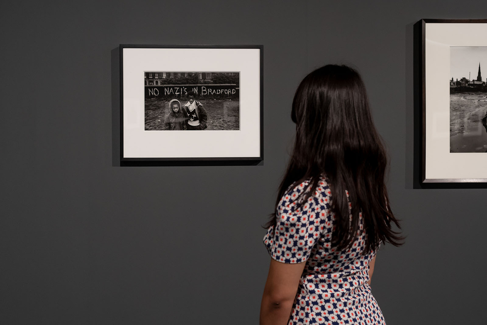 Brought up in working-class London’s East End he said he experienced the poverty he pictured and how the world he revealed was not alien to him. He often salvages traces and glimpses of humanity amidst the ruins and wreckage: a girl smiles with a cart laden with washing, against a backdrop of scrapped cars. In his picture of a mother and two children standing by the door of their dilapidated home in Brick Lane, daubed with paint with misspelt racist abuse, the disgusting message and run-down building jars with the tenderness and dignity of his portrait of the family.