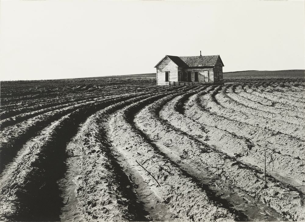 Tractored Out, Childress County, Texas (1938) features barren lines of ploughed earth leading to a forlorn seeming cabin. An air of desolation hangs within the image. Again and again, Lange’s photographs pinpoint struggle and strife, the crush of poverty and dashed dreams. Yet the strength of her images lies in their specificity, in how they condense larger-than-life problems into the situation of each image’s subject.