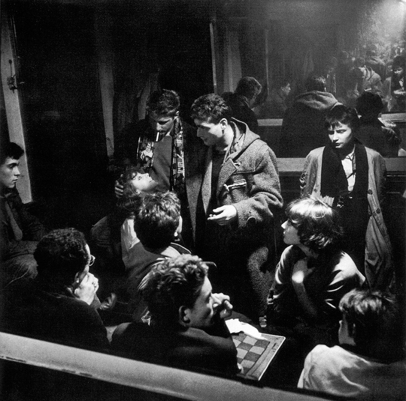 “A story in photographs about Paris – the Paris of the young men and girls who haunt the Left Bank. They dine on half a loaf, smoke hashish, sleep in parked cars or on benches under the plane trees, sometimes borrowing a hotel room from a luckier friend to shelter their love. Some of them write,or paint, or dance. Ed van der Elsken, a young Dutch photographer, stalked his prey for many months along the boulevards, in the cafés and under the shadow of prison walls. Whatever may happen in real life to Ann and her Mexican lover, their strange youth will be preserved ‘alive’ in this book for many years.”