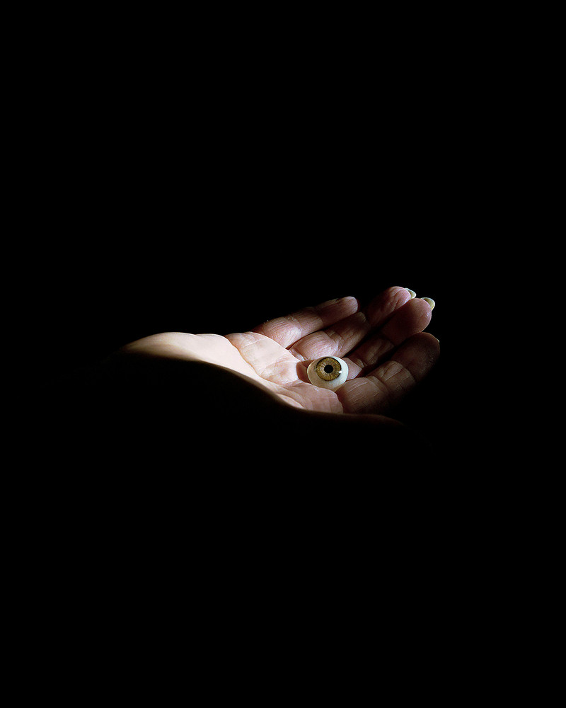 Then there are all of the photographer’s references to body parts—hands, eyes, chattering teeth. One particularly powerful image sees a single glass eye cradled in someone’s palm, extending from the darkness beyond. Both darkness and the uneasy dichotomy between seeing and unseeing recur throughout this book, characterized by an intense shadowiness that swells through the sequence—a shadowiness that either eclipses or frames scenes at every turn of page. The title itself alludes to this state, taken from one of the clues based on an old proverb: the blindest man is the one who refuses to see. For Graham, that felt right for this story, with its many characters still looking in all the wrong places.