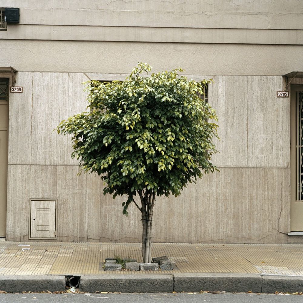I am also intrigued by the relationship between the tree and its surrounding, the concrete or brick base it stands in, or meager hole that it has been granted, the walls behind it. I find there are parallels between the trees and us: their individuality as well as the sense of fate. How they have been fated to grow or not, flourish or suffer, and ultimately die within this urban environment of concrete walls and pollution.