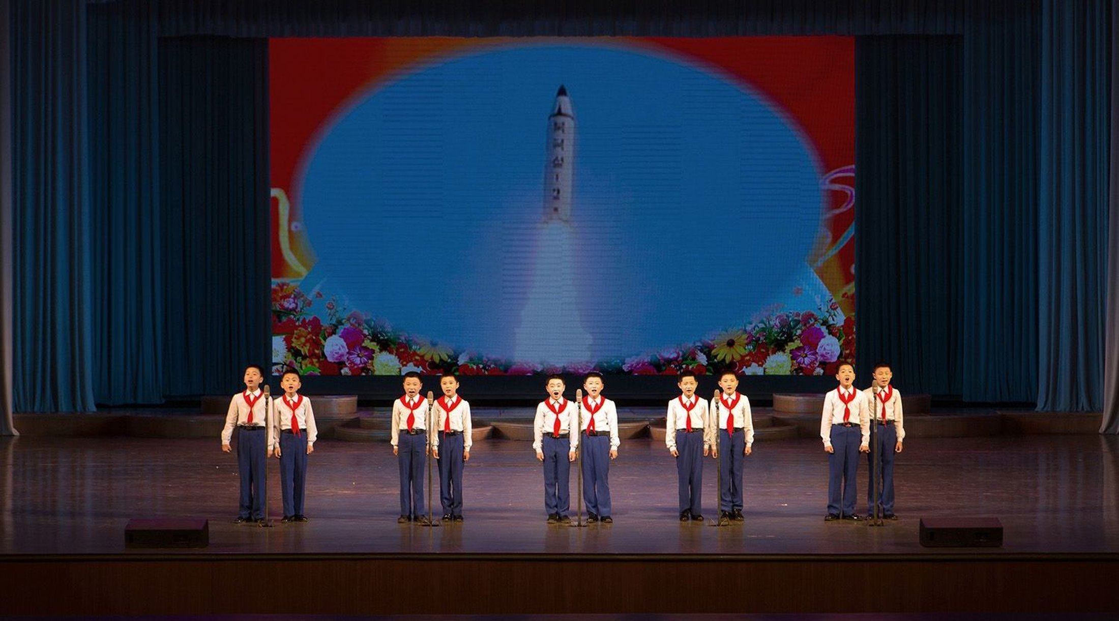 Korean Dream, #03. A moment during a show organized for the visitors to the Children’s Palace, “Mangyongdae,” near Pyongyang. This site is dedicated to children ages 6 to 17 years old. About 5,000 children come here after school to learn how to use a computer, dance, sing, play an instrument, practice sports etc. © Filippo Venturi, Winner, LensCulture Emerging Talent Awards