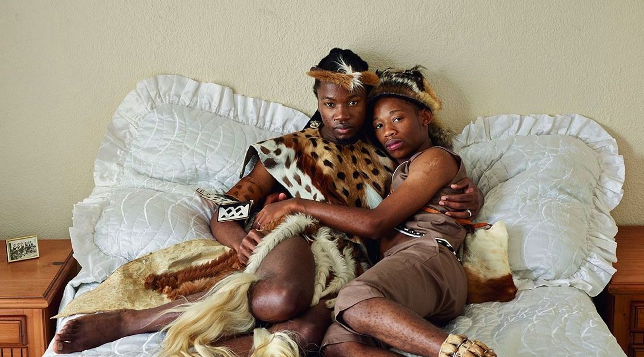 Memory and the passage of time punctuate the works through visible scars on skin and land, decaying fruit, misty eyes, bent trees and buckling bodies; most frames are invaded literally and thematically by the shadows of the past, their subjects remain shackled by the stereotypes and prescribed roles of colonialism and Apartheid. Whether presented as youth, mother or elder, vagabond or nanny, Hugo challenges himself and us to view these figures as South Africans, first and foremost, looking beyond race or class even in the parodical images, such as the sexualized figures reclining on a bed, draped in traditional animal print clothing.