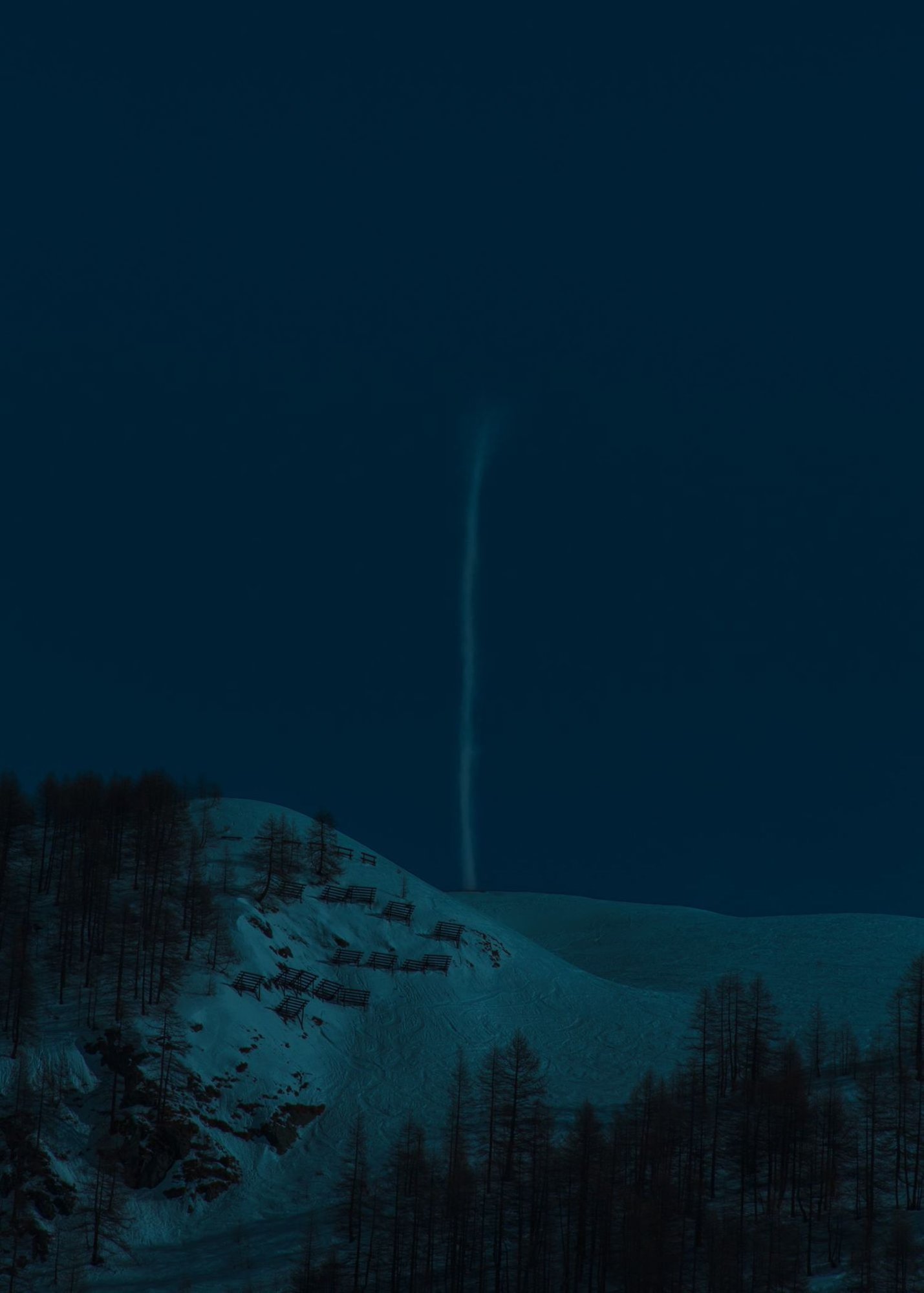 For photographer Francesco Merlini, capturing this balance has been the foundation of his years-long project Valparaiso. Merlini was born in a valley in the Italian Alps, returning to his family home there regularly while growing up. Throughout the subsequent passing of both his father and mother, his appreciation of the valley’s natural beauty was met with internal tension. He tried photographing the landscape in a classical documentary style, but soon abandoned it after each bright, sunlit photograph didn’t exactly communicate the emotions he wanted to portray. Instead, he began creating images imbued with magical realism, calling to mind nightmares and conflicting memories taking place despite the beautiful scenery.