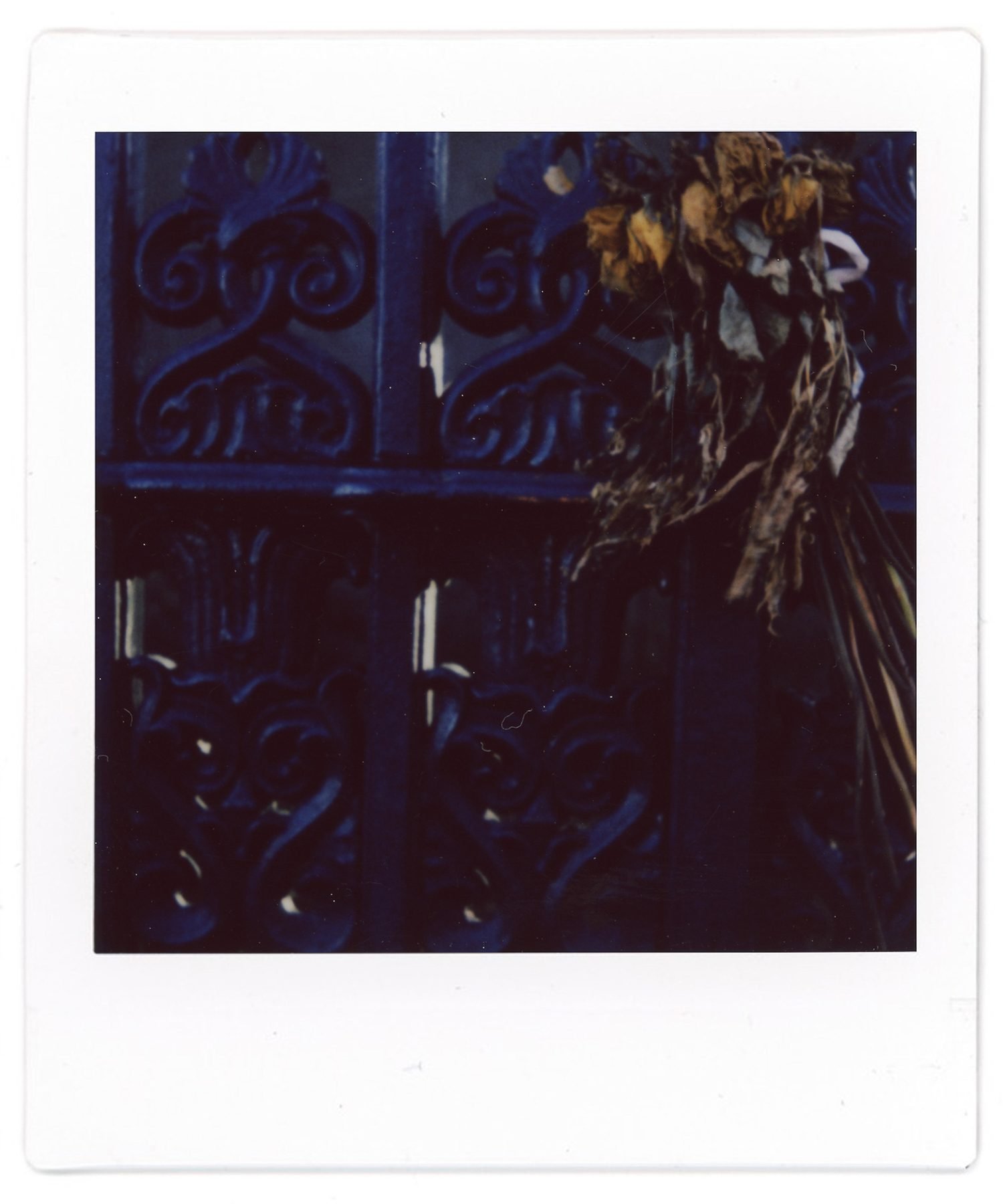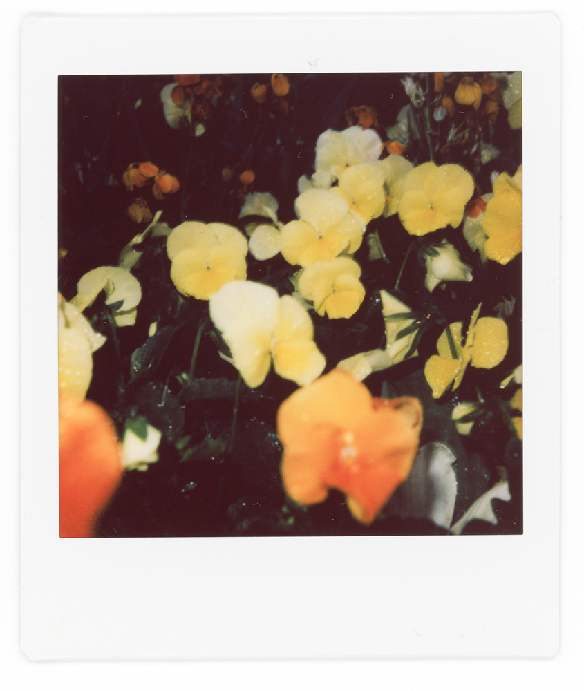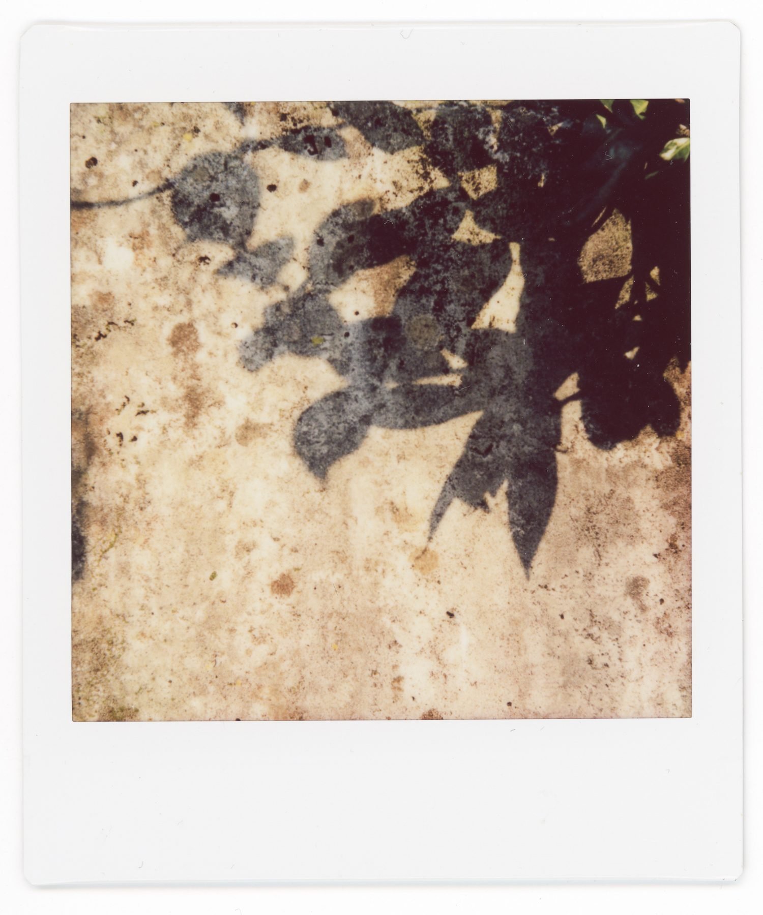 This element he found through Polaroids. The tactile quality of the Polaroid—not simply a flat printed image, but rather an object itself with a material frame—allowed a sense of demarcation, a clear space where his presence can be felt. The Polaroids give weight to the intangible quality of his endeavor. Adding to the archive, he photographs the natural world; the view from a window, the shadow of leaves on a wall, the buttery yellow of daffodils ruffled by a breeze.
