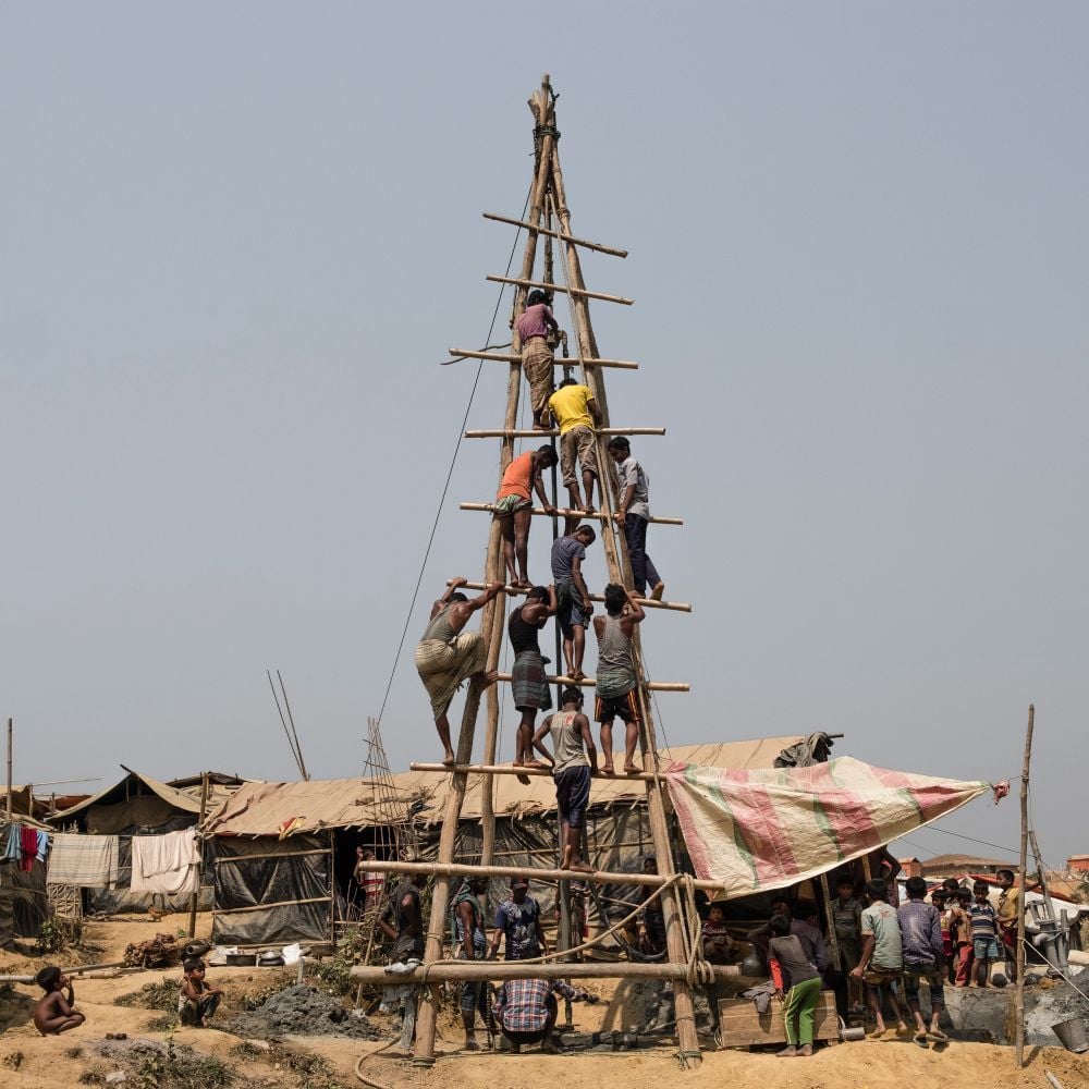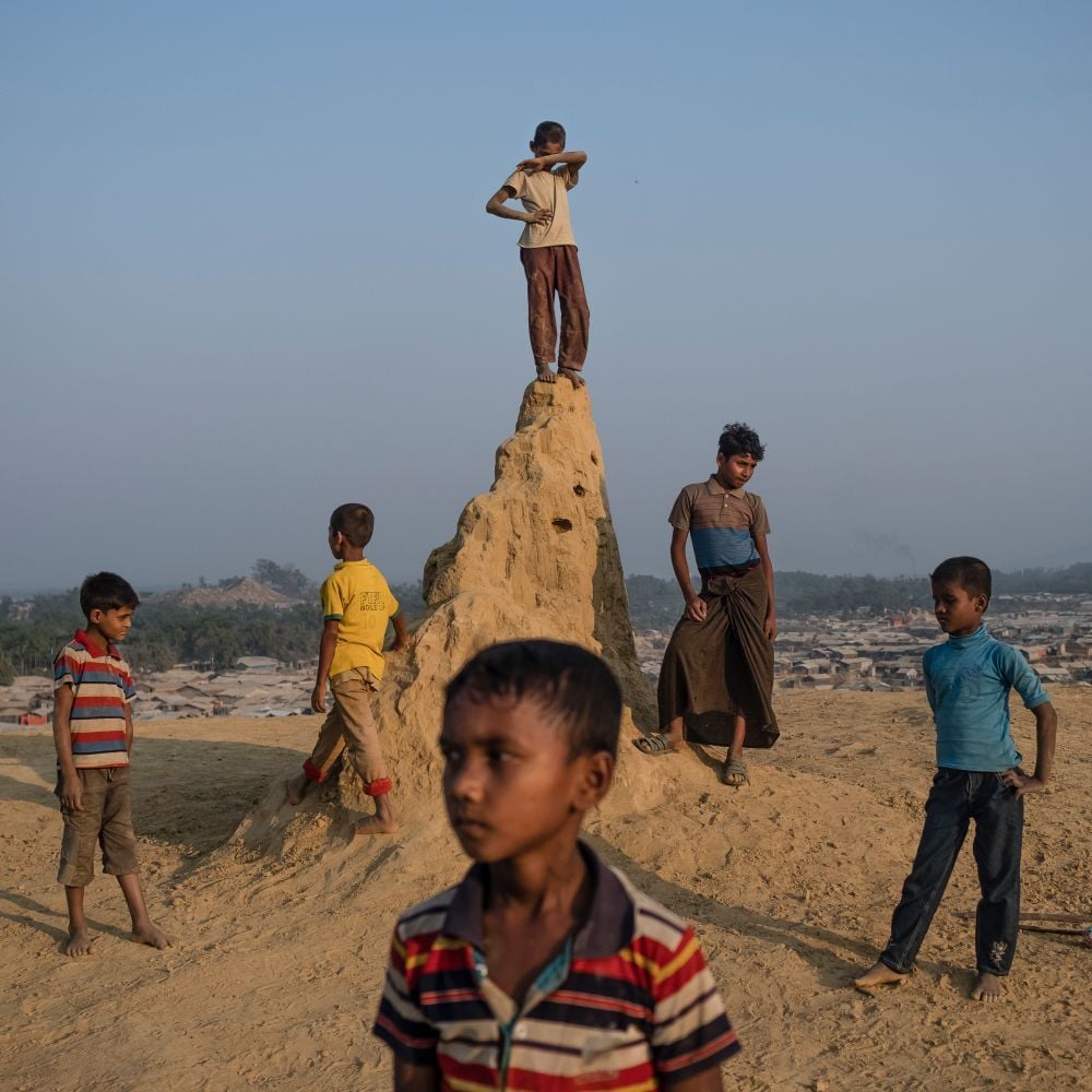 Balukhali-Kutupalong, located in Cox’s Bazar in south-eastern Bangladesh, is currently the world’s biggest refugee camp. Summer 2017 saw the latest mass exodus of the Rohingya people from neighbouring Myanmar, with over 1.3 million individuals displaced by targeted violence in their homeland. One of the country’s many ethnic minorities, the Rohingya Muslims, have faced persecution for decades, with a new wave of attacks in the Rakhine State provoking what the UN has described as the world’s fastest growing refugee crisis. The UNHCR estimates that following their journey from Myanmar, over 900,000 people have landed in makeshift camps in the city of Cox’s Bazar, where the two largest hubs have overflowed into the surrounding areas. It is not this plight of displacement that Italian photographer Gabriele Cecconi has focused on in his work on the area, but rather the complex and precarious living conditions that the refugees endure on arrival.
