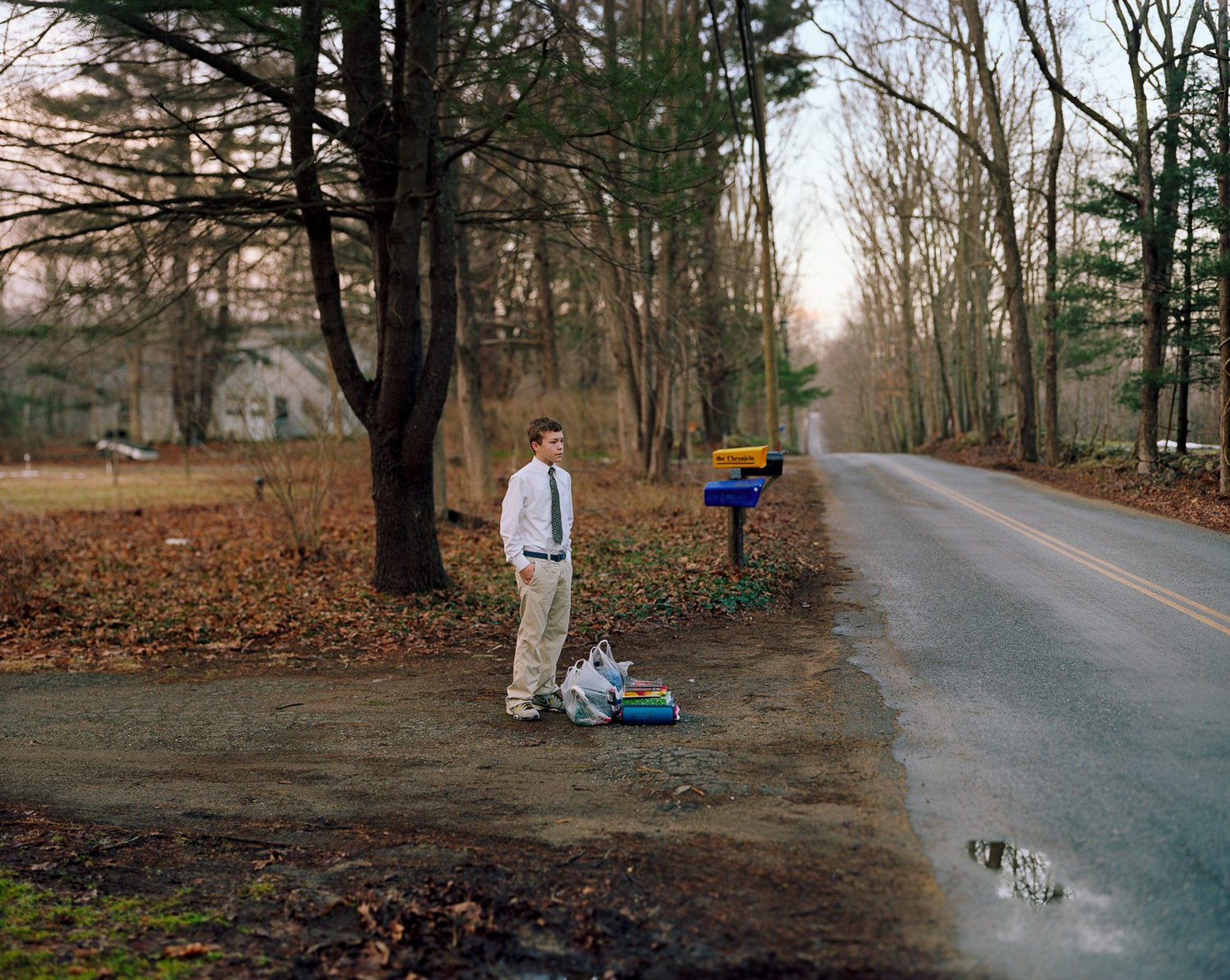 This series, which features images of children waiting for the bus in their small Connecticut town, was motivated by the tragic mass shooting at Sandy Hook Elementary School in Newtown, CT. The shooting took place an hour away from my home.