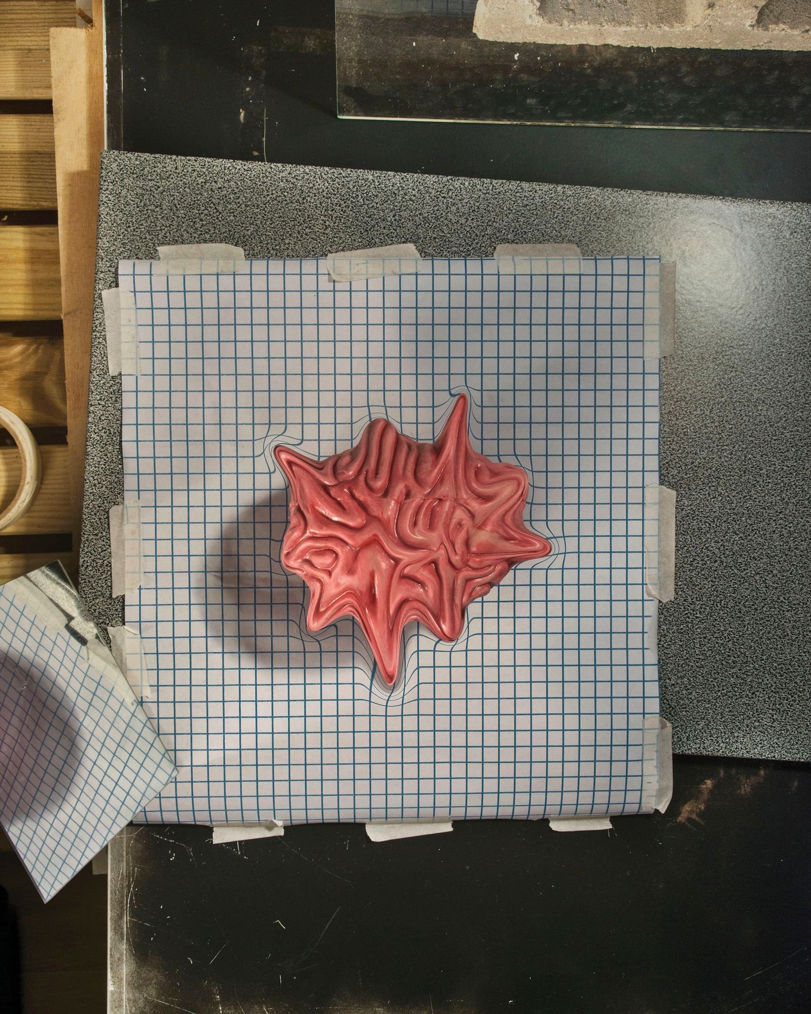 Another choice was the use of color. I realized that in scientific papers, vivid colors are often used to signal changes in the experiment—material, substance and temperature—so it’s a present element in many of the images. On the other hand, I used block colors as the background in some photographs to get close to the old fashioned images I researched in catalogs and encyclopedias. Interestingly, most of the material I used was either disposable, or things I bought in industrial supply chain stores—a key detail for me while choosing the materials for the photographs.