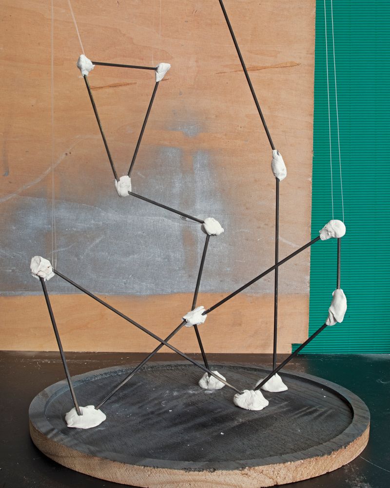 GG: Although we want to believe we are very close to some technological advancements, in my opinion, the fact is the opposite. In this work, I tried to translate this view aesthetically, always keeping some edges or imperfections on view, leaving paint marks on wood boards or improvising with tape, wire, debris, rusted material and brick as elements for the imagined situations. I also didn’t want to be driven by this shiny, silver, clean metal look often found in any visualization of the future.
