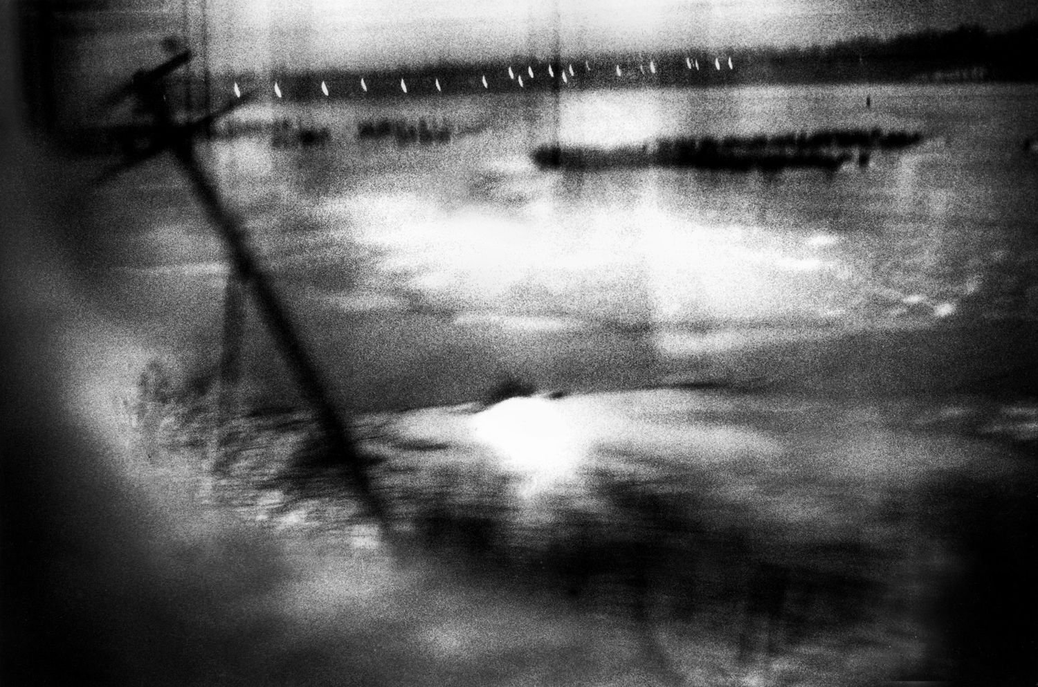 Discussing the difference between memories and photographs, the late John Berger once wrote that “whereas remembered images are the residue of continuous experience, a photograph isolates the appearances of a disconnected instant.” Posner turns this formula on its head. What we get are residues, images of traces left on the mind, the look of things after we close our eyes and allow them to dissolve. Shunning the tyranny of focus that isolates the visible, the photographs, like St. Petersburg itself, are all liquid. The city is never allowed to fully adhere to the film, precluded by a subjectivity that wrestles with it, contorts it, and, in the process, liquefies it into a smear. The result of such poetics of dislocation is a new home beyond borders, perfect and continuous.