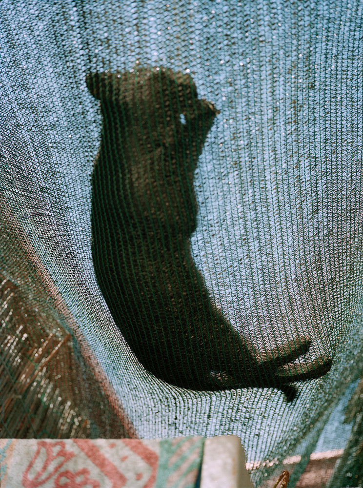The journey we are taken on has an enchanting quality as we follow the photographers on their daily path of exploration. Variations on the theme of nature pop up throughout the book, some ephemeral like the gust of wind blowing a bright red towel mid-frame or the glowing monochrome pools of light stretching down empty streets. Some more tangible, conjuring the photographers’ diverging interests. For Steinmetz, a longstanding curiosity about how the “natural world tries to survive in a hostile urban setting” informs his pull towards the non-human. “How do the plants and animals make their way?” he asks, his images answering in the swaying trees that line the motorway or the languid body of a cat stretching out in the shadows of a street.
